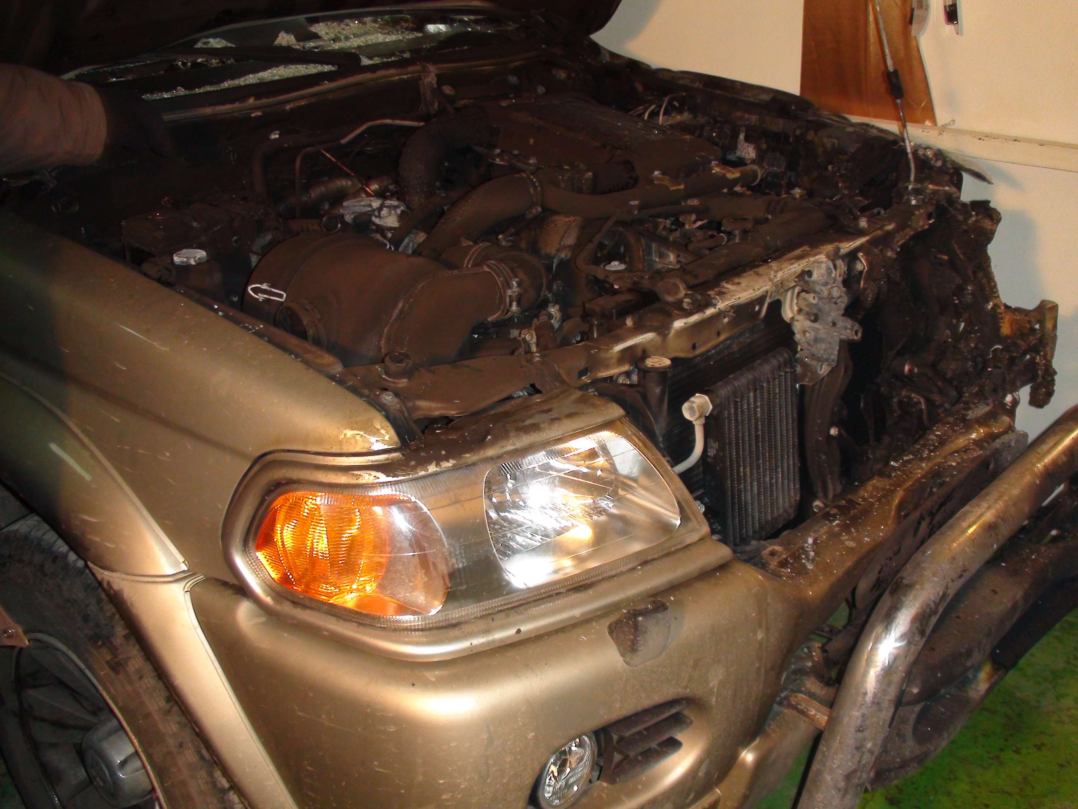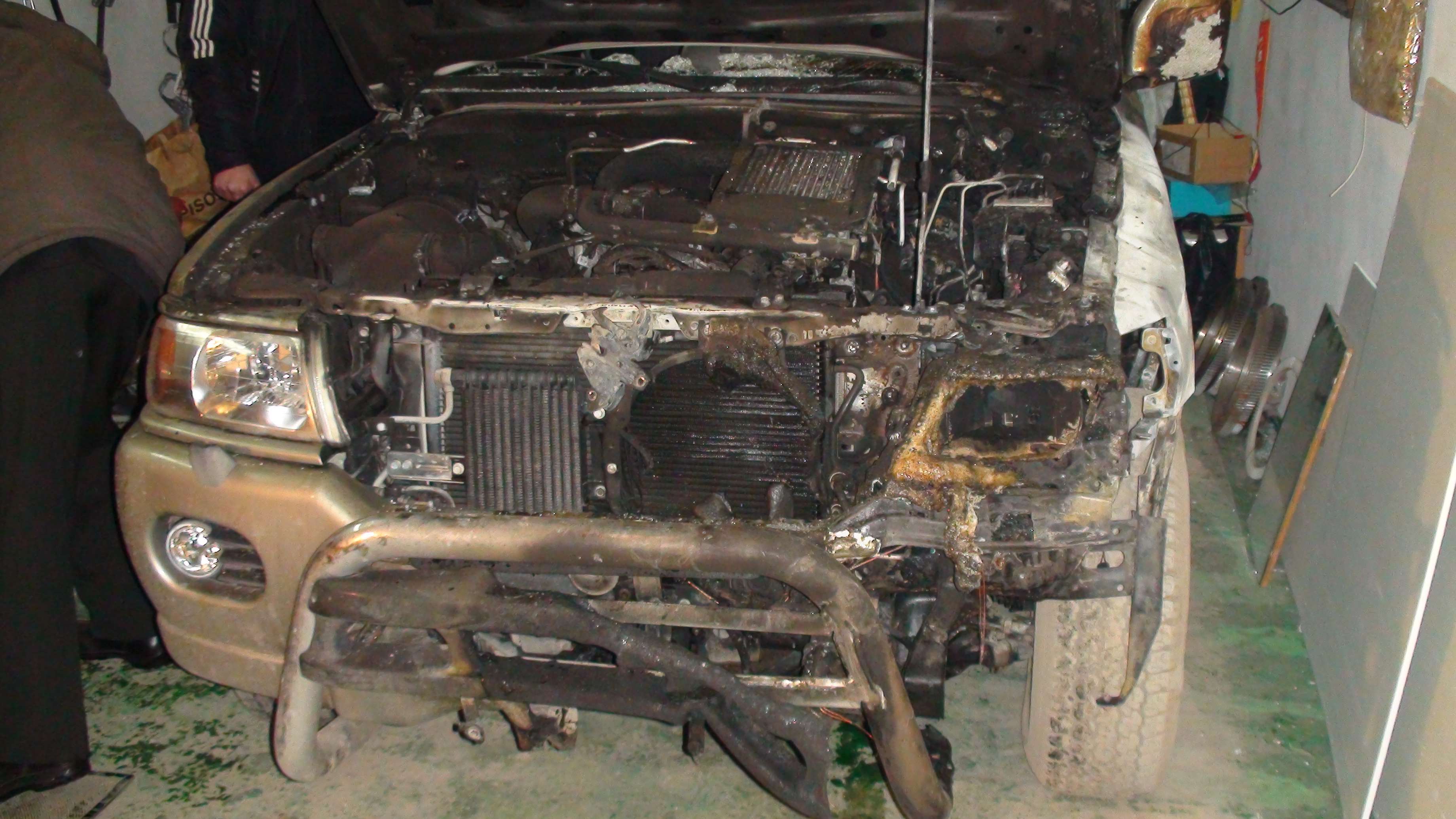 Сегодня ночью во дворе подожгли Мерседес Гелик, рядом стоял наш Паджеро спорт