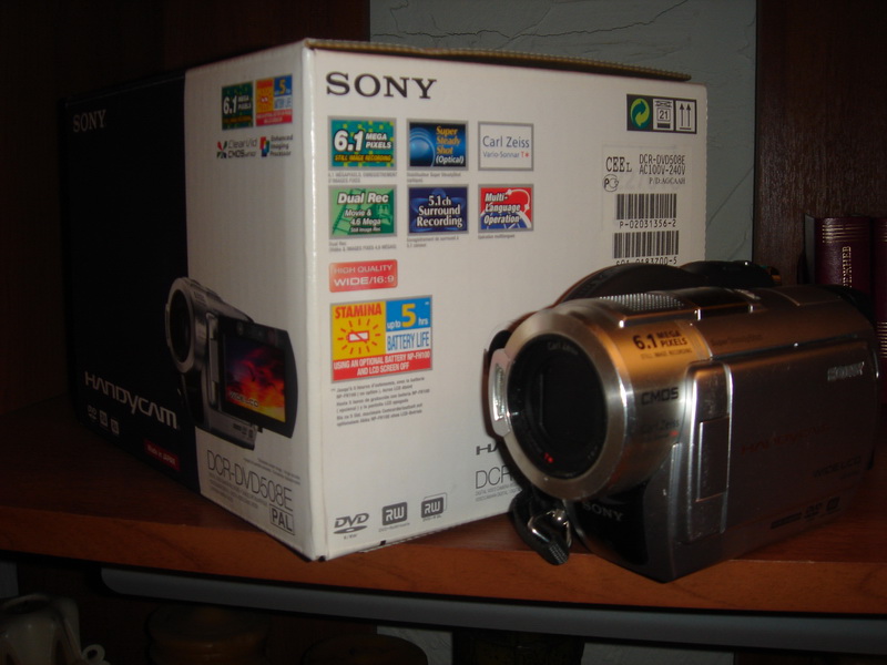 Б/У в отличном состоянии Sony DCR-DVD508E.Полный комплект как из магазина.Аккумулятор в идеале.Пишет видео на маленькие DVD болванки,фоткает на флешку.10000 с торгом ::-):