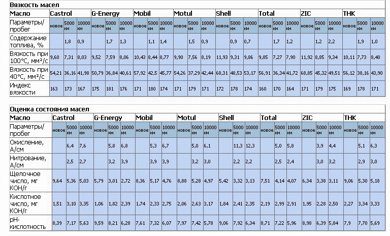 С тем что подделывают согласен, а если масло оригинальное, то большой разницы нет. Смотри ниже табличку результатов тестирования. Что импортный Mobil, Castrol, что итальяно-газпромовское G-energy, не только результаты хим. анализа примерно одинаковые, но по цене особо не отличаются.maksa-727 писал(а):Пробовал Castrol GTX Magnatec 5w40 - НЕ ПОНРАВИЛОСЬ - очень сильно загаживает(засаживает) двигатель,плюс его (CASTROL) очень много подделывают,перешел на AGIP Formula ll plus 10w40 - отмывает внутри мотор очень хорошо.