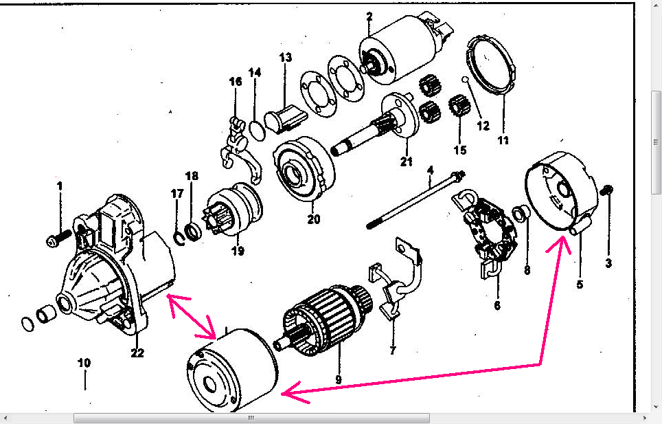Нужно проверить чтобы был хороший электрический контакт по минусовой цепи начиная от минусовой щётки до болтов крепления стартёра к двигателю. У меня между крышками стартёра были следы нагара, когда всё почистил стартёр заработал бодро. Ещё зачистите место контакта стягивающих болтов 4 с задней крышкой.
