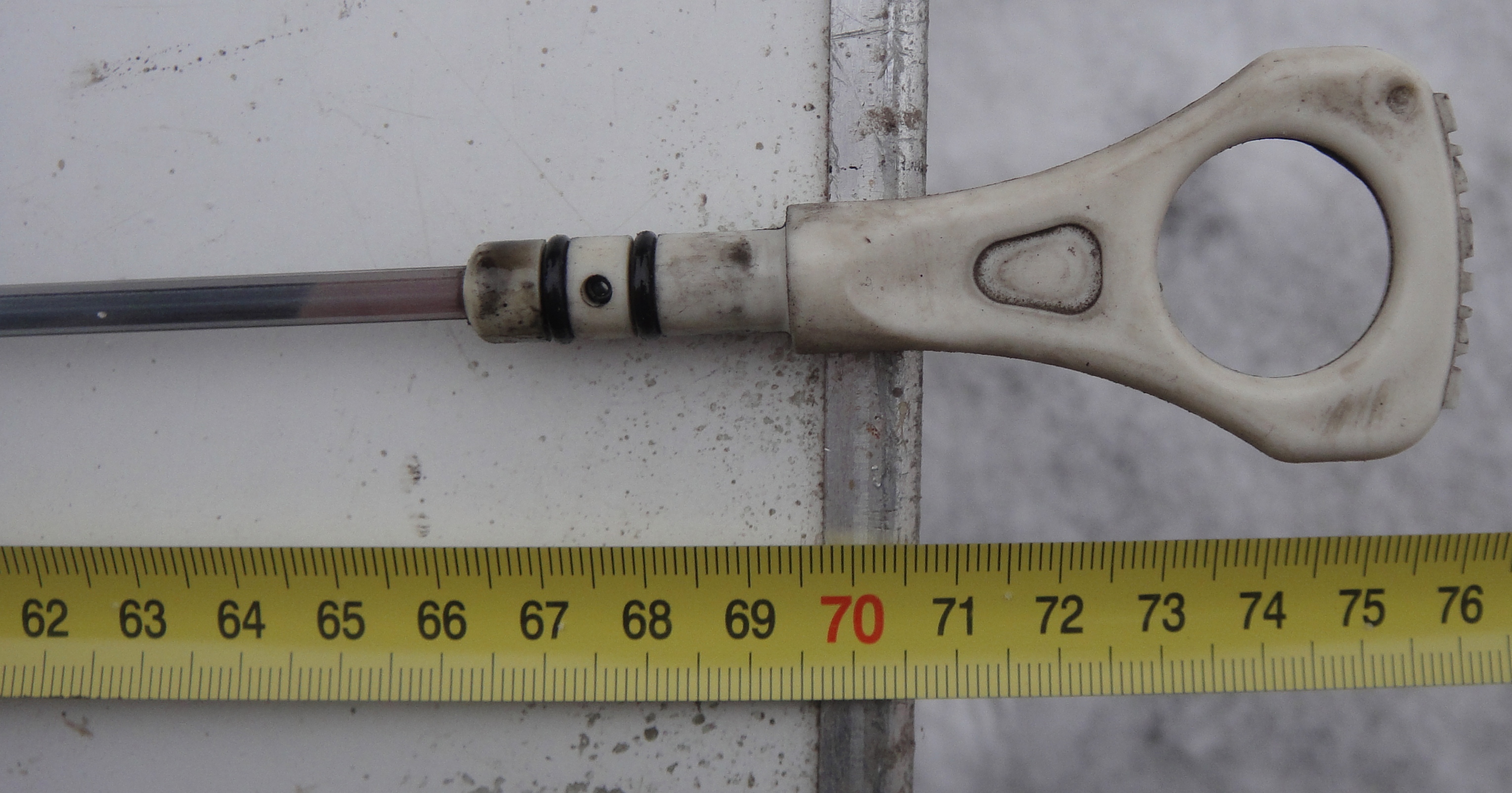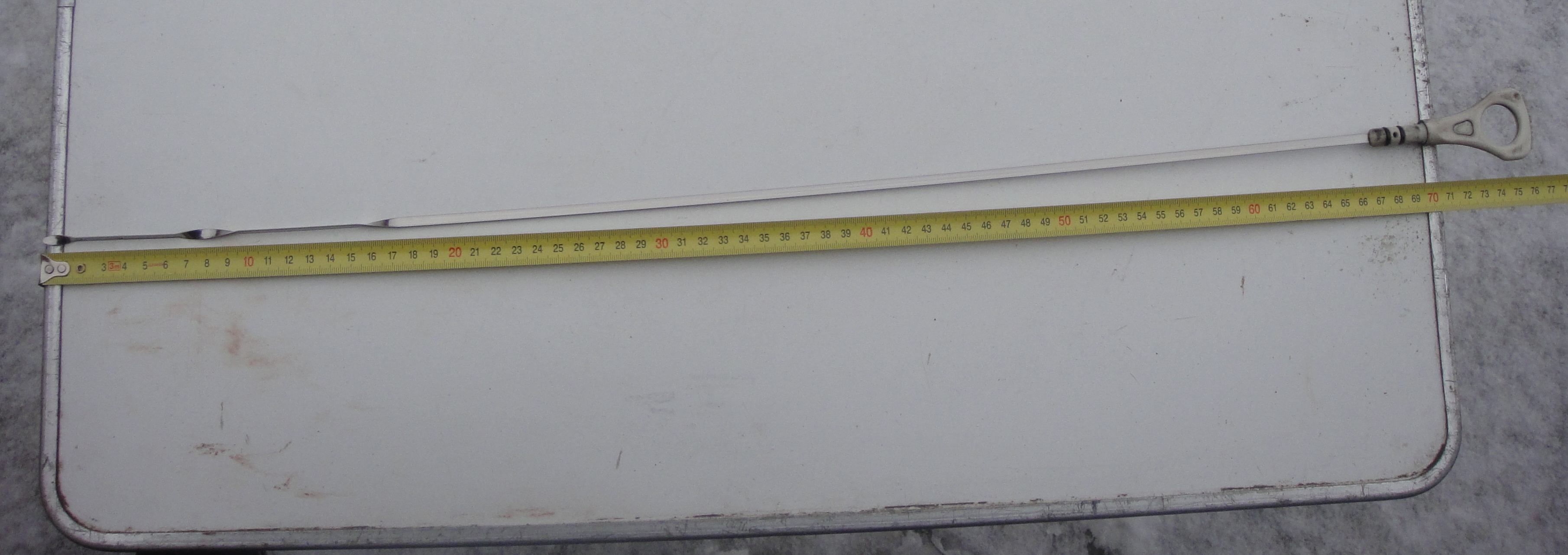 Короче у меня стоял щуп: белая ручка, тросик и на конце пластмаска с рисками, т.к. пол пластмаски отвалилось решил заказать новый щуп! Пришол, белая ручка(такаяже как и на моём щупе) и металическая лента с двумя дырочками на конце вместо рисок вот, но дело все втом что при сравнении щупов мой даже обломаный длинней нового! при обращение к поставщику детали было все проверено и выдан ответ: все верно это ваш щуп старый щуп не отвашей машины!!!
