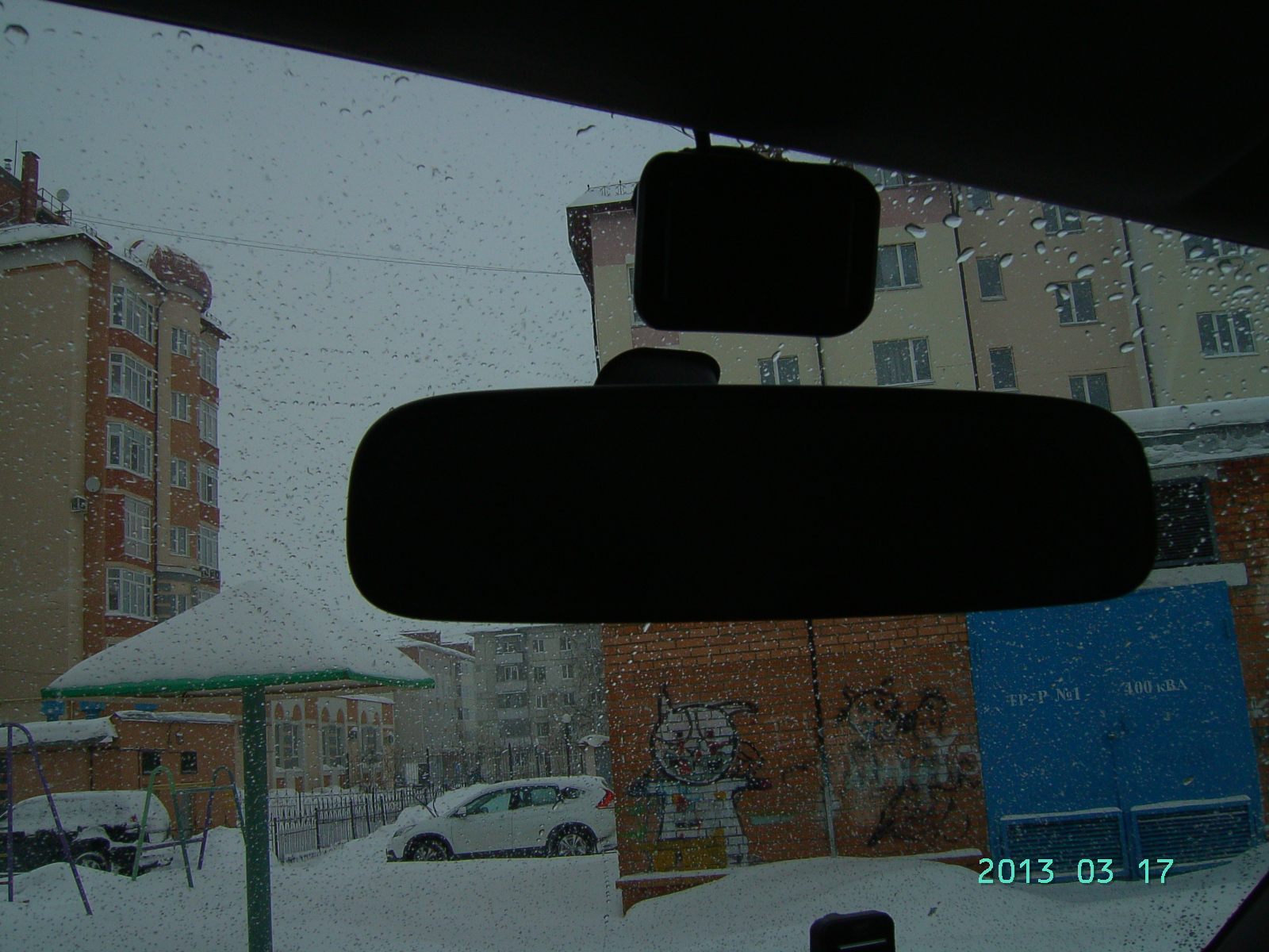 У меня установлен на зеркале заднего вида.