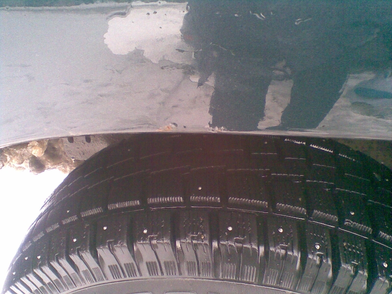 Ну и с зимней резиной, на которой машина сейчас тоже проблема - три колеса Купер дискавери, одно Медведь.