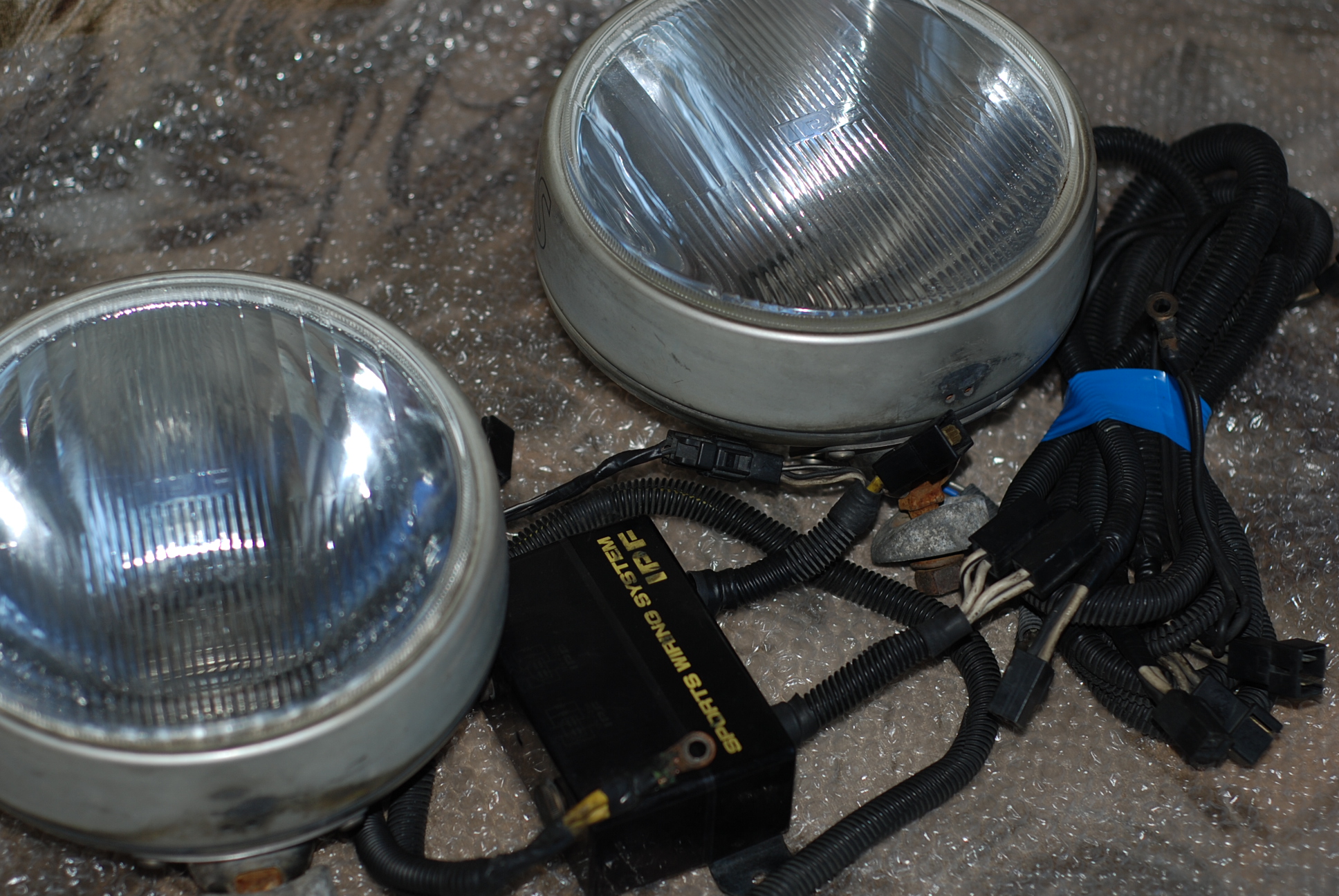 8) IPF 930, желтые, нашел проводку, с решетками, состояние идеал, но есть трещина на стекле 1ой фары (была при покупке, заклеена, отьездил зиму - все отлично), ксенон с блоками внутри, свет как от галогена но ярче раза в два, 7500