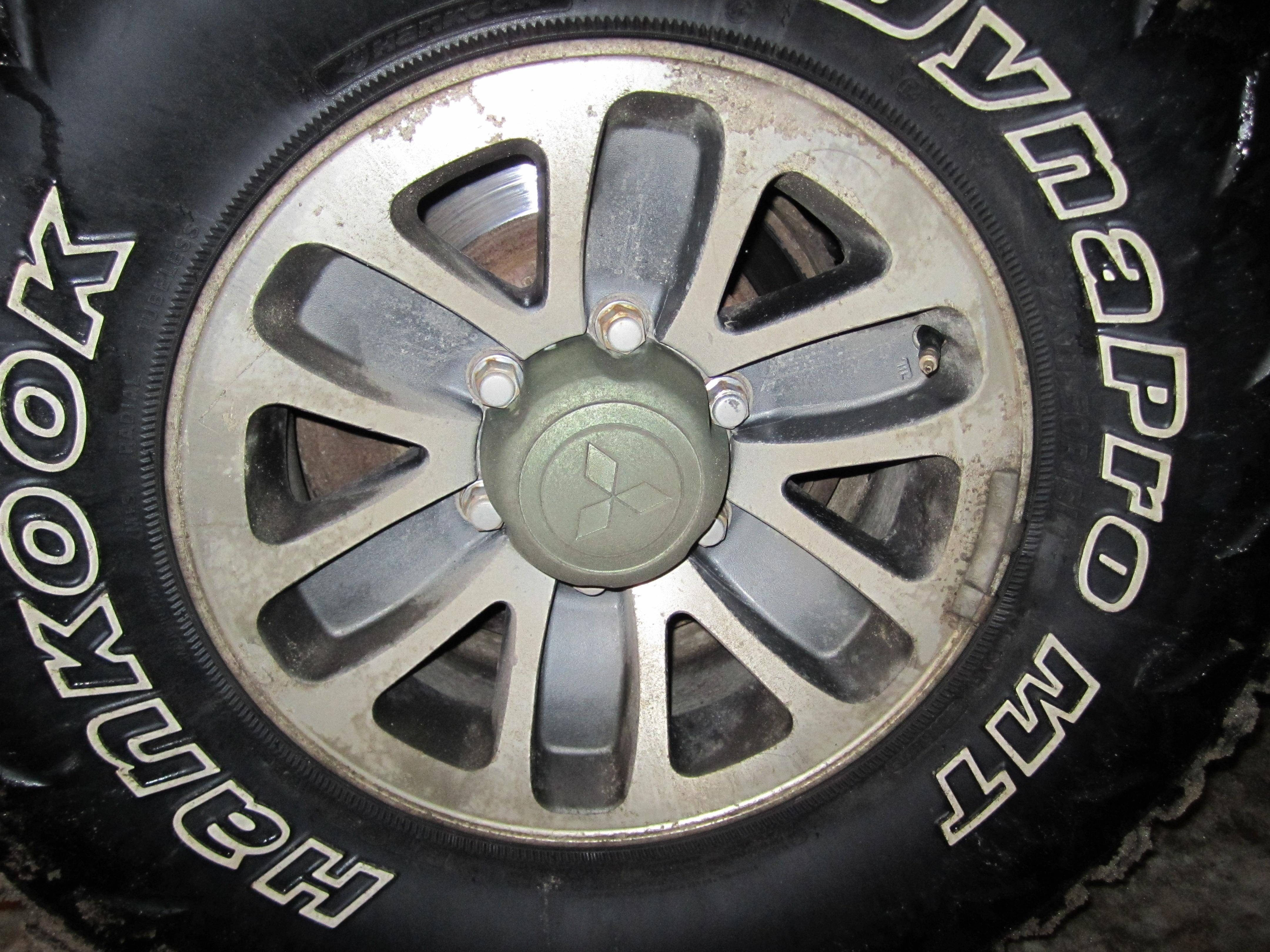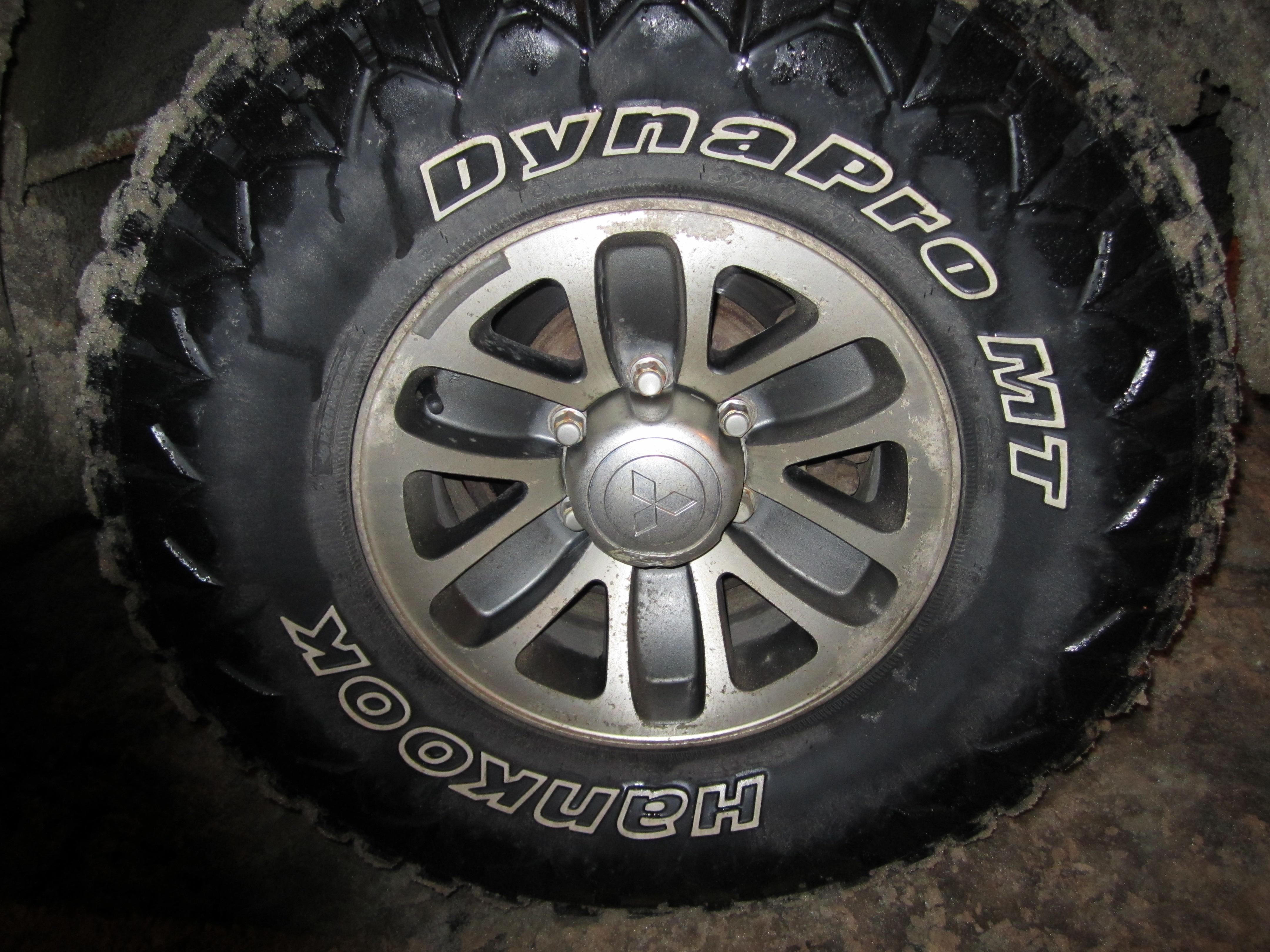 Продаю резину Ханкук RT03 32x11,5x15.Диски родные от Паджеро 15x7 вылет 10.Прошел на резине не более 20 тысяч км.Износ равномерный,грыж,проколов и прочих болячек нет.Отдам с колпачками и пружинками,но без гаек.Цена 27 тысяч рублей.Отправлю транспортной компанией в любой регион.
