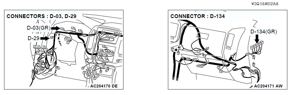 Оба разъёма на задней панели приборного щитка. D-03 более длинный, D-01 покороче.