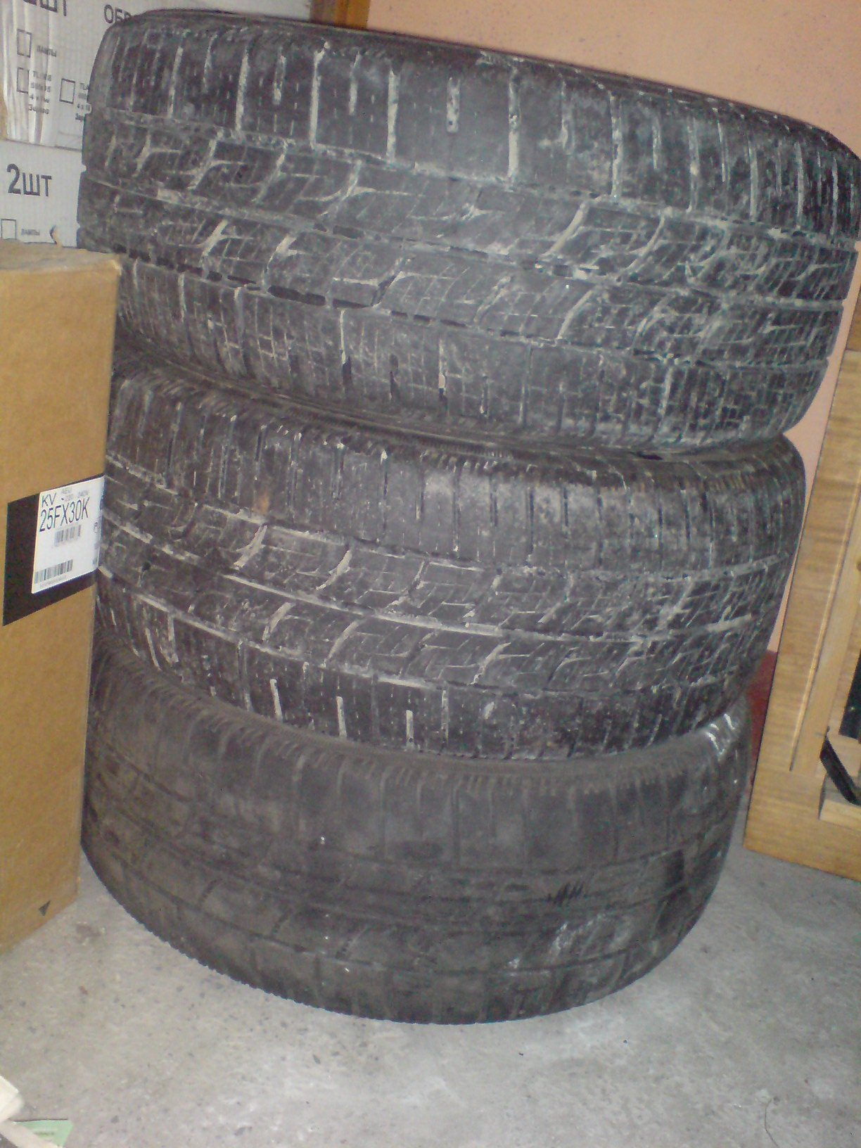 два в хорошем состоянии, одно - сильный износ. На каком-то точно есть отремонтированный прокол