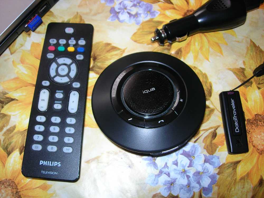 Купила вчера в Медиамаркте автомобильный блютус. Для меня лично удобный- разговаривать в машине частенько приходится , а на ухо цеплять не нравится. Здесь установка на козырек или липучку. устройство маленькое, плоское и невесомое. Внутри аккумуляторы, поэтому подключения к прикуриватею постоянно не нужно.