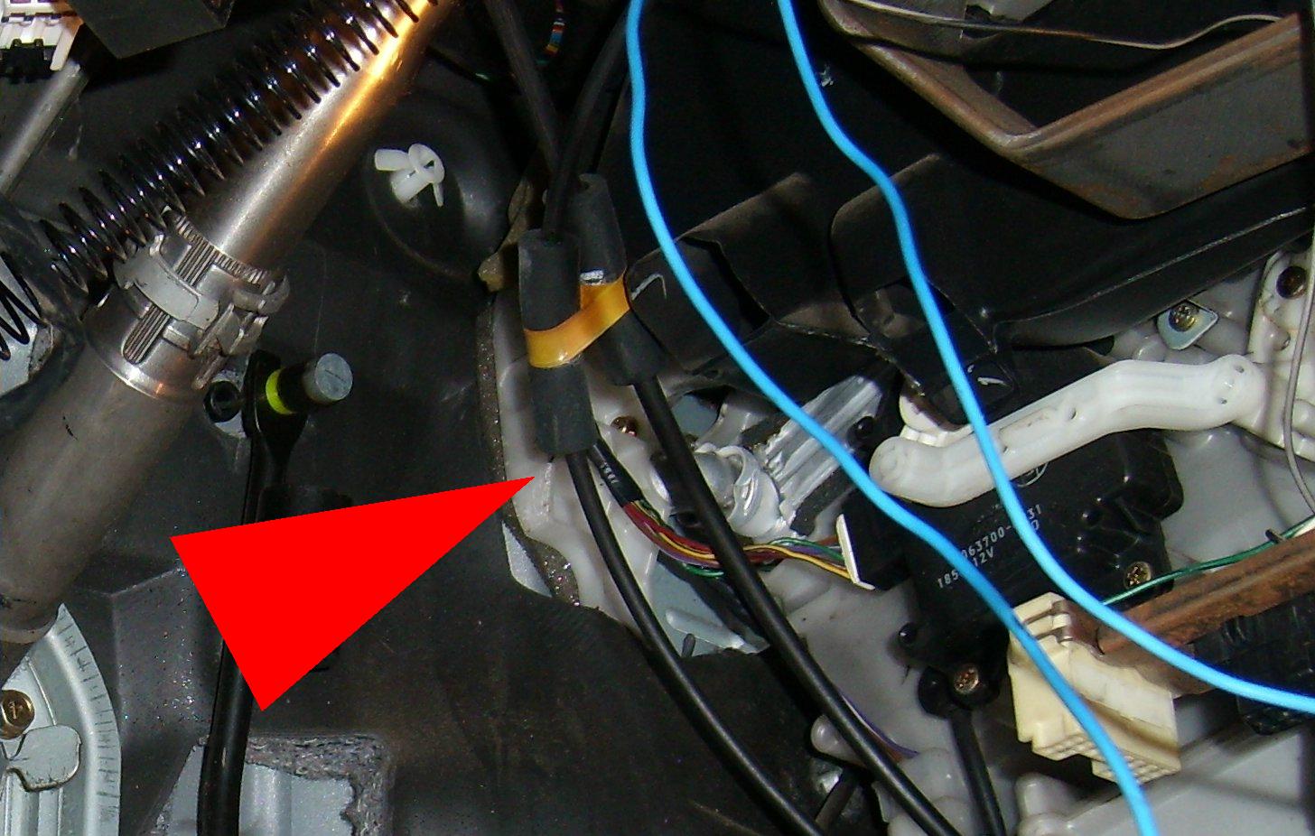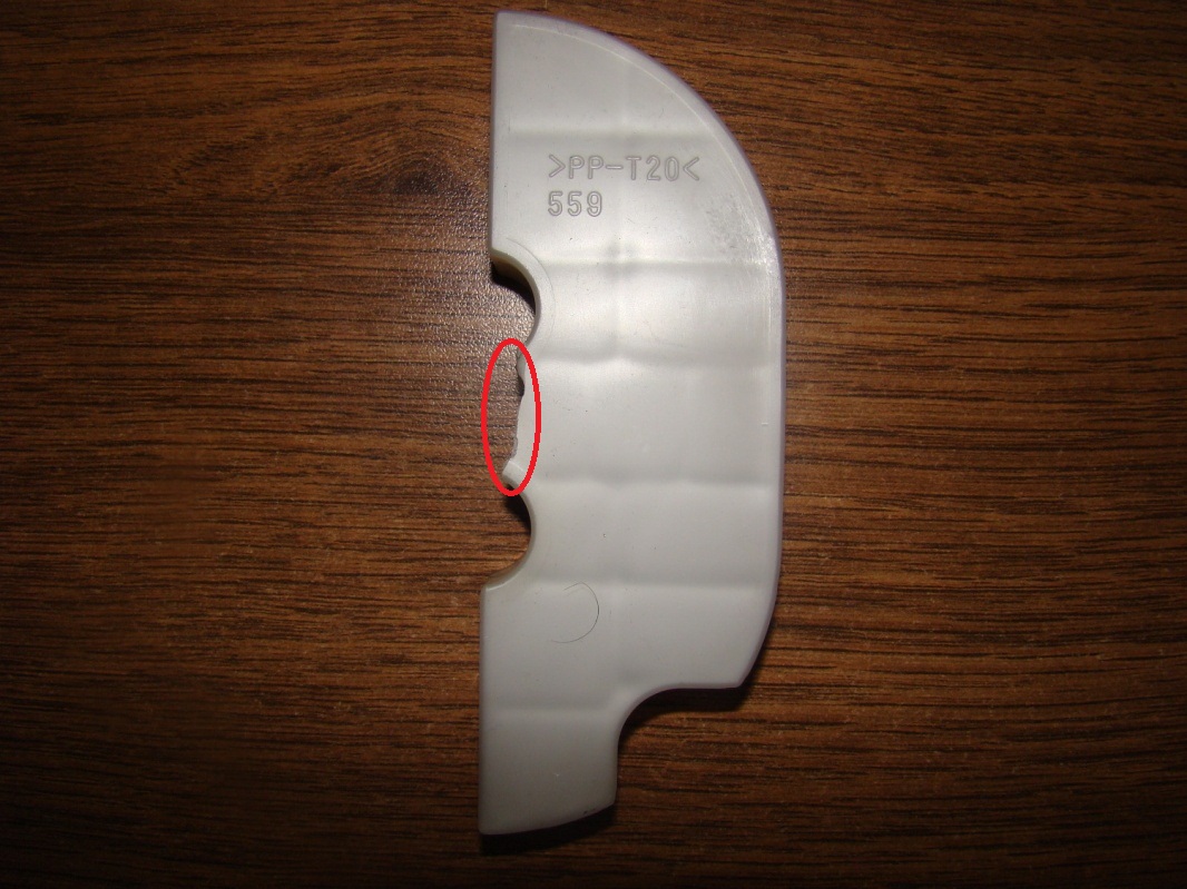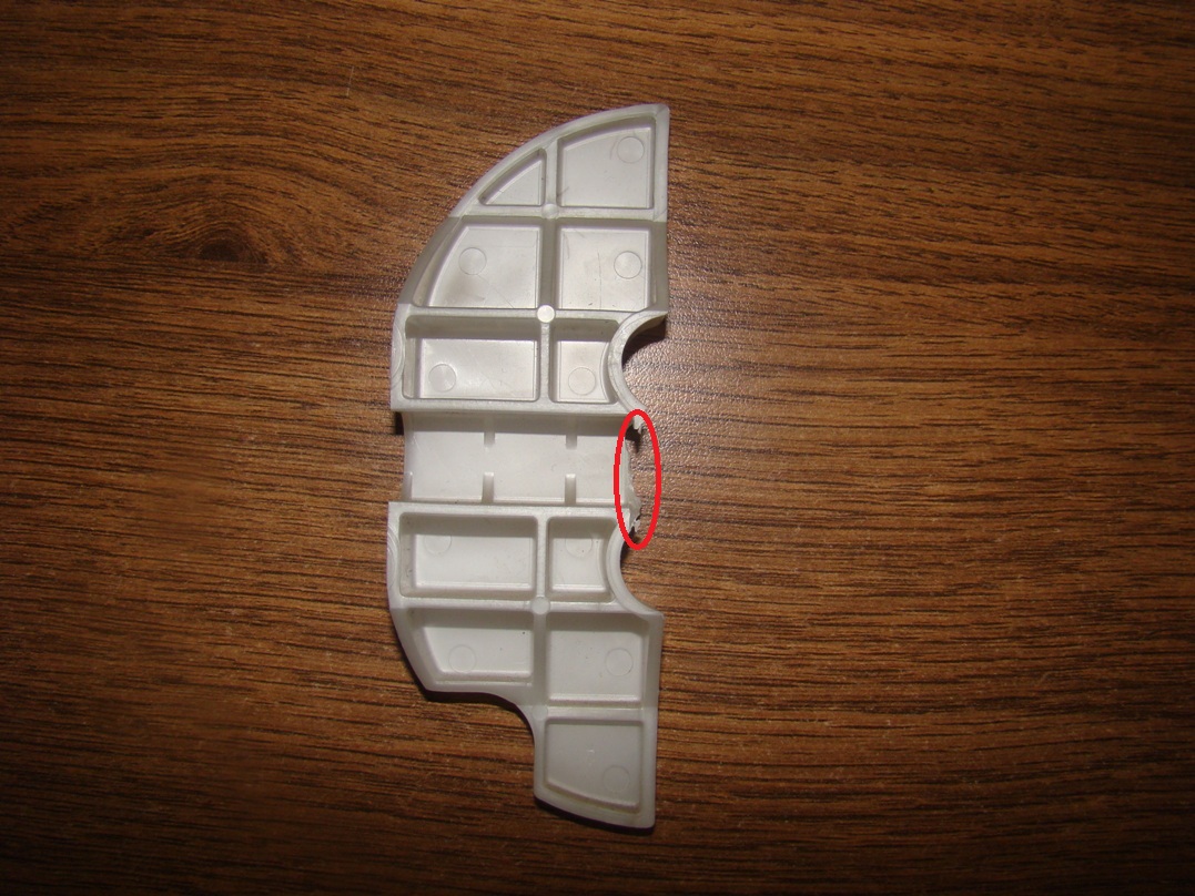 Обнаружил её у педалей на полу. Красным обвел место отлома.