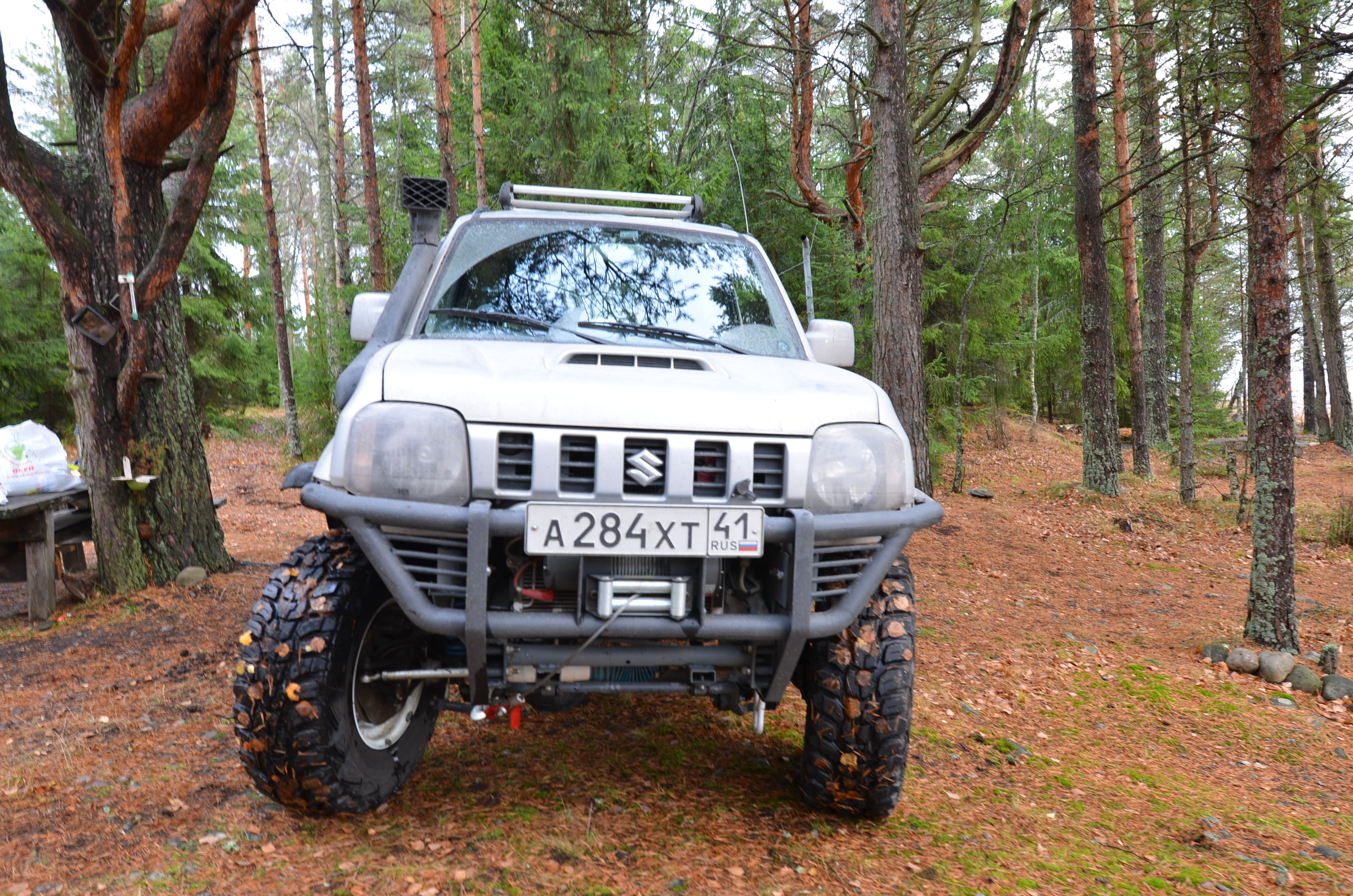 В таком красивом виде его существование продолжалось пол года, пока в очереднои лесу не потерял верхнюю часть бампера, а потом и оставшийся пластик. много трагедии я из этого не делал и понял, что это путь к силовому бамперу.