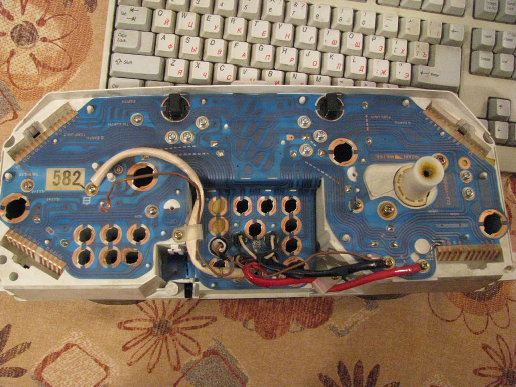 Цвет какой? у мну есть приборка, жёлтый цвет. покупал за 500р. могу отдать за те же 500р + доставка. приборка немного разукомплектована. сделать фото могу и выставить. мне не подошла и цветом и то что под тросик спидометра она. тахометр на месте. там помоему резисторы выпаяны из индикаторов уровня амортизаторов. а так свиду ничё. под СС приборка. Ещё на гибкой гибкой плате в паре мест проводники имели обрыв и кто-то до меня сии обрывы восстанавливал пайкой припоем или проводочками(?). загляну в шкаф - точно скажу