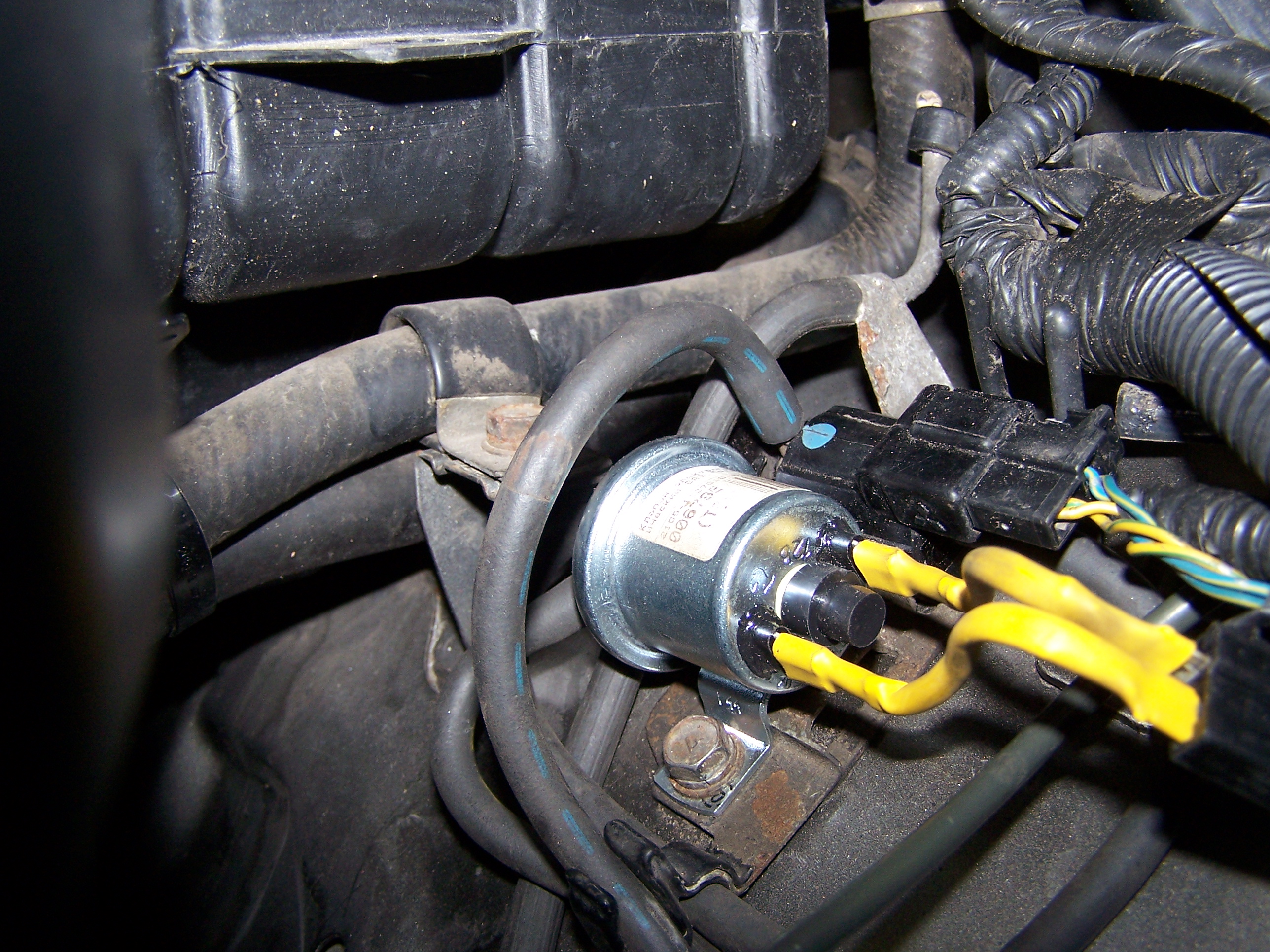 Счастье длилось недолго, ночь (((, утром завёл, лампы отключились, пару раз моргнули, и заморгали как до этого и было, мост опять полностью не выключился.Стал бороться, тупо подключать без селеноидов, посредством затыкания и соединения трубок (вакуум-селеноид) Получилось, вазовский датчик работает (жёлтый) родной типа пропускает (синий). А вот хрен! купил второй отечественный,заменил,опять хрен!