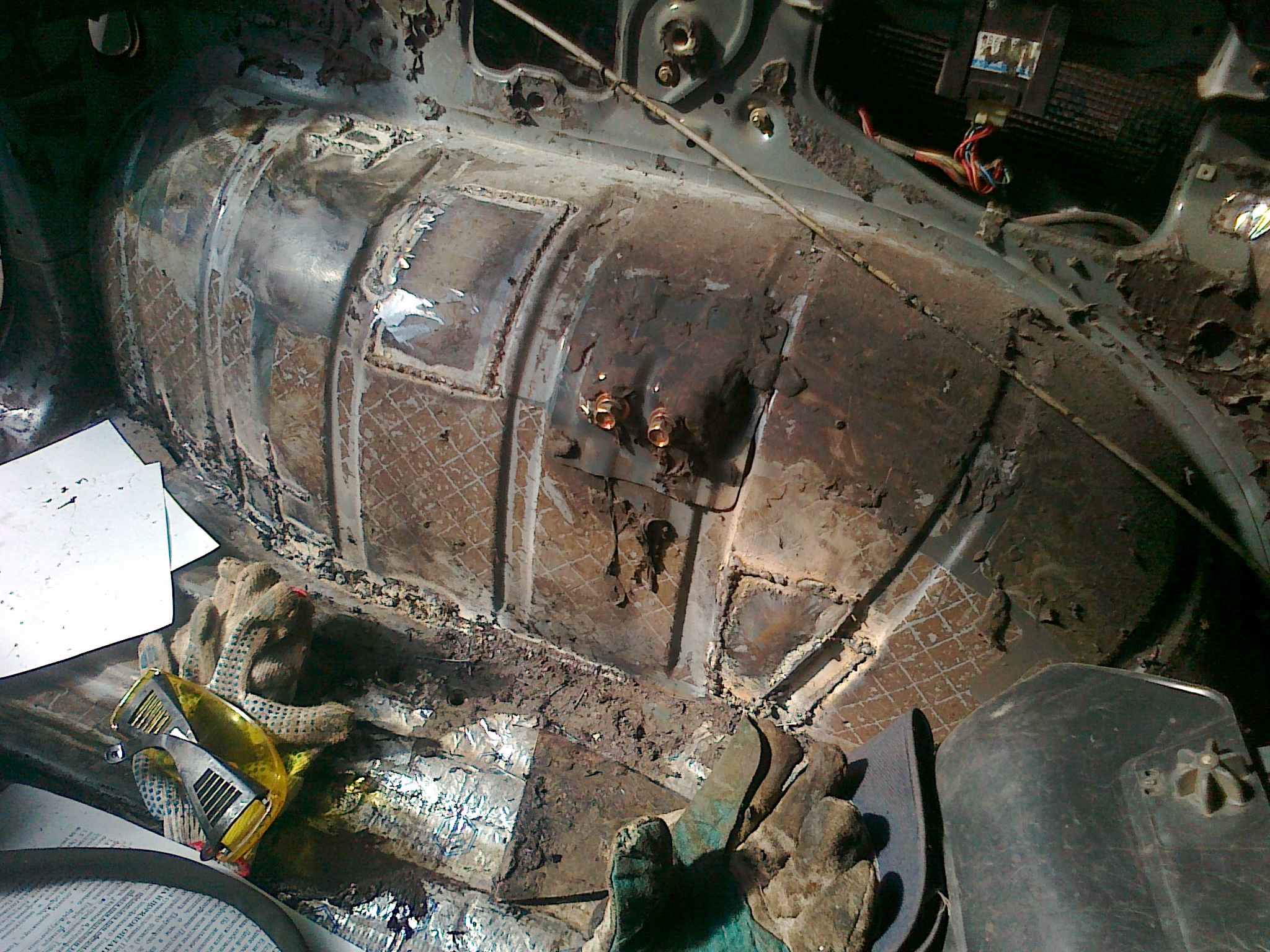 1 в 1 тоже самое. Только рама у меня хуже гораздо была. Почти по всей длине варили. Задние арки, пороги, полы спереди. Все было заварено. Теперь все изнутри промазал мастикой. И закатал полностью двойной шумовибротеплоизоляцией (пол, стены, потолок и двери). В общем получилась такая капсула. Заказал все тормозные трубки и шланги (оригинал) - буду менять. А то одна сгнила - что - то боязно ездить (неизвестно когда остальные лопнут). Раму на выходных буду всю проливать раст-стопом. Затем отдам на подготовку и покраску. Буду красить в красный металлик (чтобы цвет в ПТС не менять). Жаль нет фото как было. Когда накладки снял - аж плохо стало. Полностью все гнилое было. Машина напоминала решето.