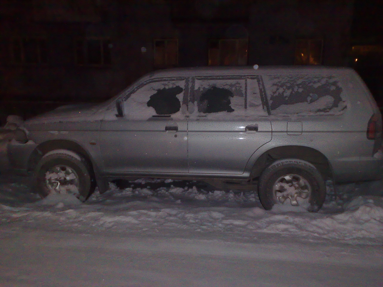 Нашел! Стоит сугроб, к нему ни одного следа не ведет! Паджеро Спорт, 2000г.в., 4D56, МКПП, LSD мост, самая бедная комплектация!!!