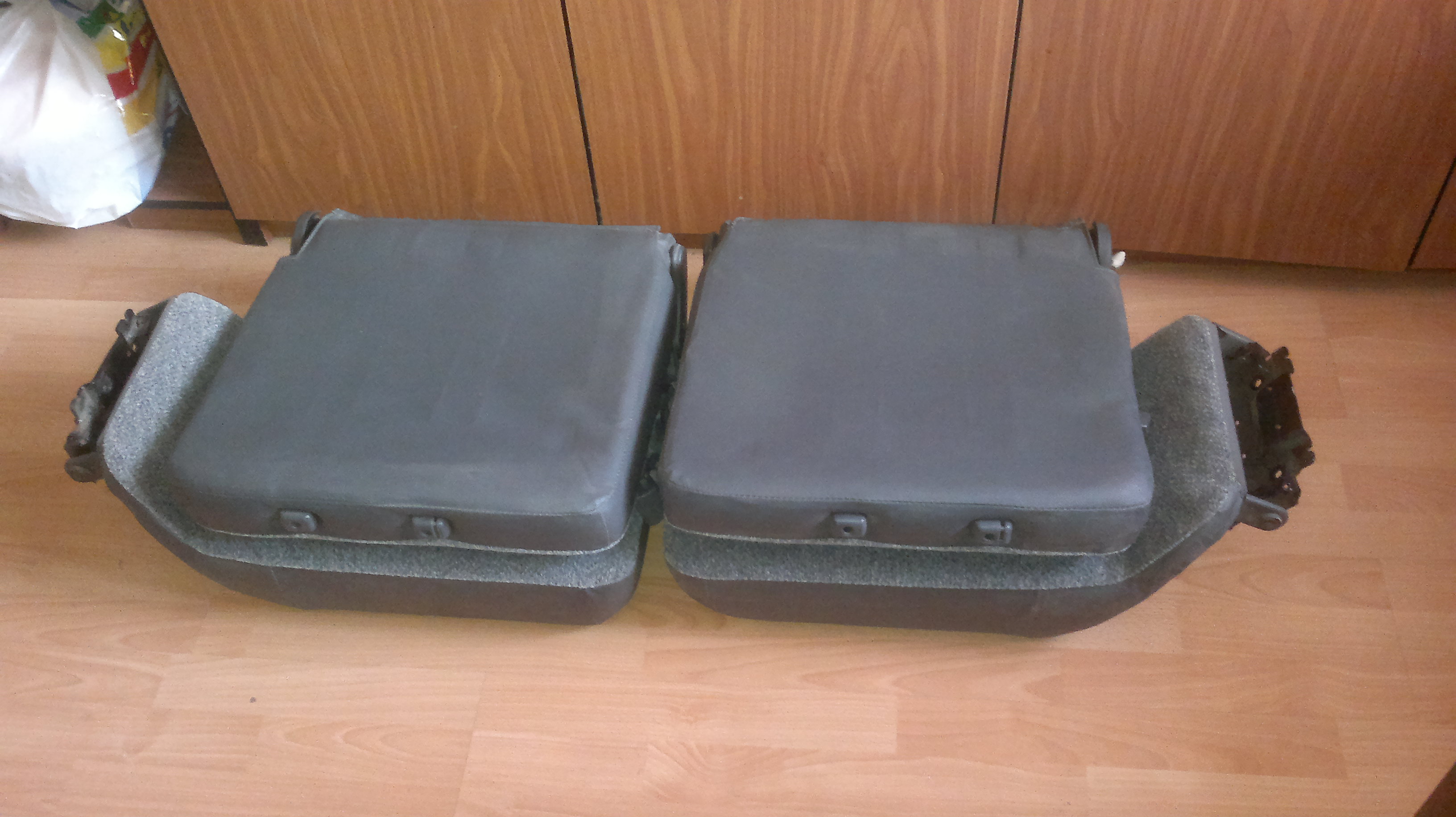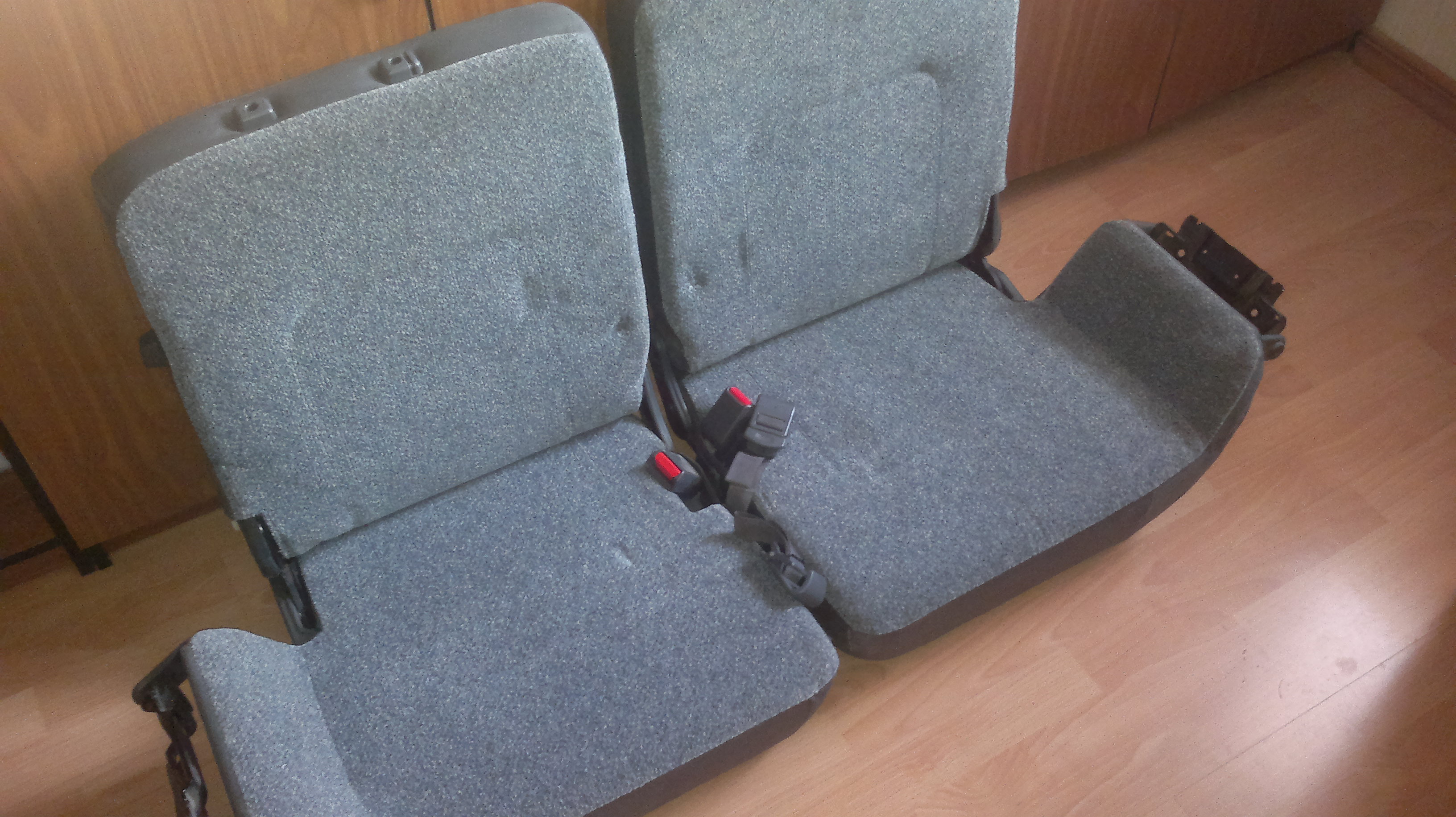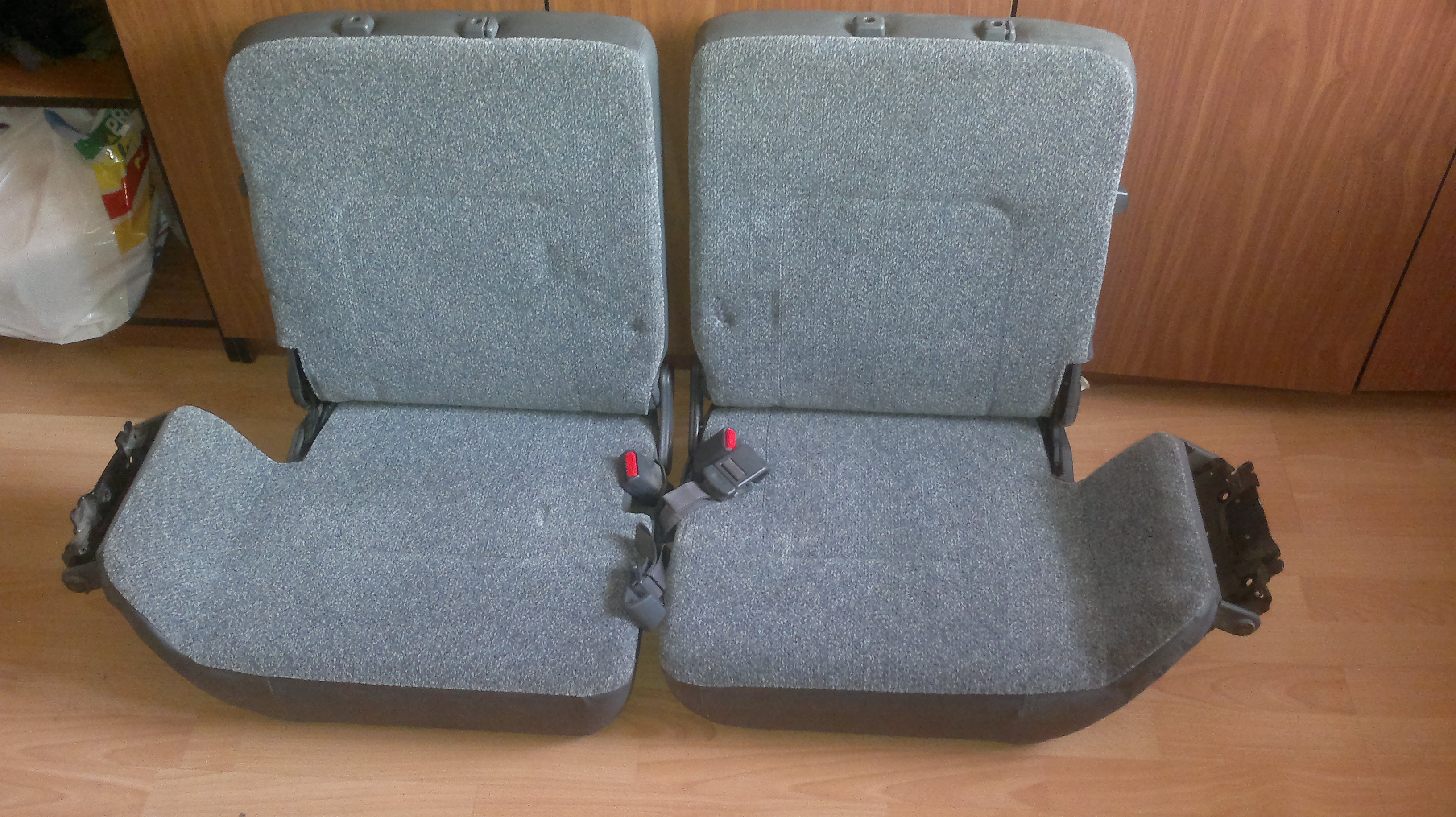 Велюр, состояние близко к идеалу. Пролежали в гараже лет 8мь. Подголовников нет.