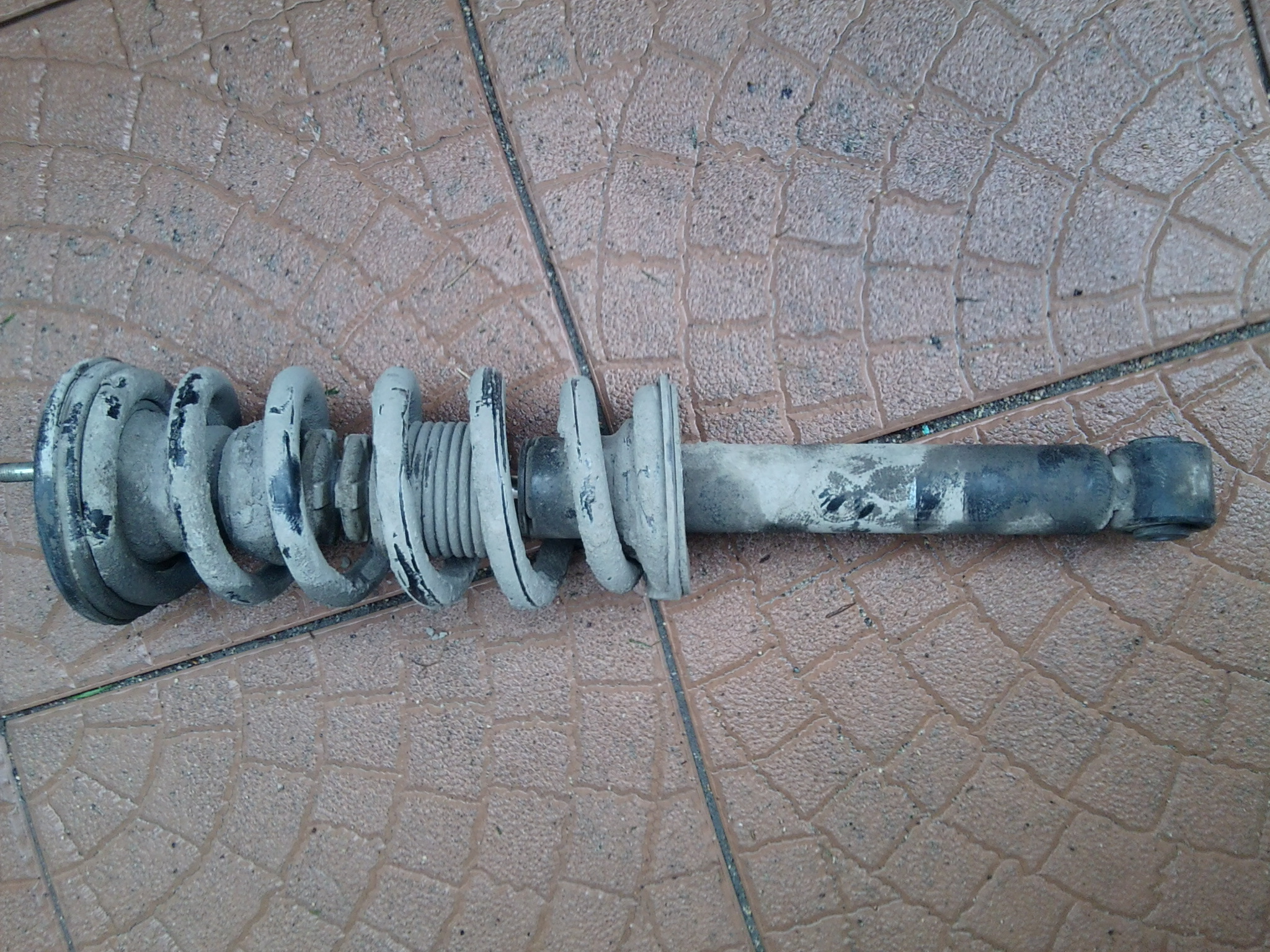 Далее в обратном порядке собираем стойку, только с новым амортизатором и пружиной. В комплекте с амортизатором идет новая гайка, чашка, в которую упирается пружина, нет только пыльника и резинки под эту чашку, которую приходится снимать со старой стойки.