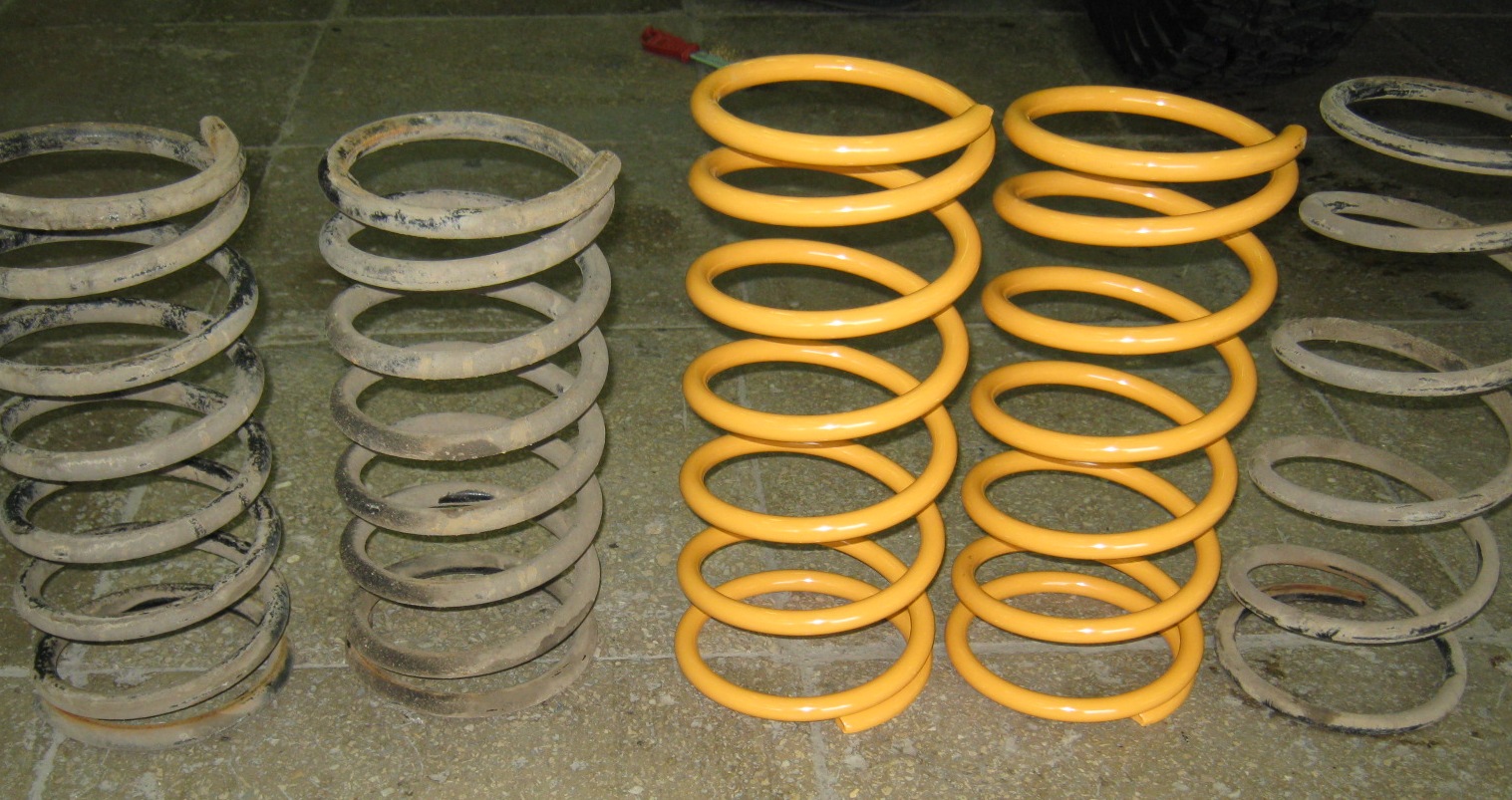 На фото первые 2 это суплекс , вторые 2 соответственно мэны , и третья одна это сток , толщина витка у суплов и айрона 16мм, у стока 14. Витков на один больше чем у стока у обоих. Хочу к примеру за них по рублю , брал по моему по 2 за шт.