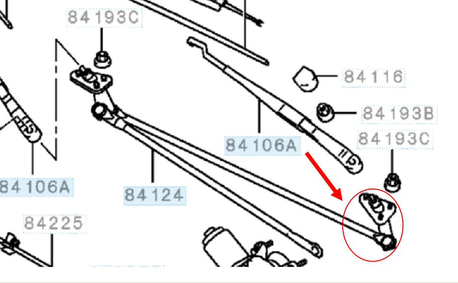 Приполз домой расстроенный стал искать "штырь". Отдельно не нашел. Рычажный механизм очистителя в сборе по каталогам не ищется. Искал на автодоке и екзисте. Джапанкатс каталог тоже ничего не дал. Не знаю даже как теперь быть. Прикладываю картинку с искомой деталькой. Буду рад любым наводкам на VIN детальки или на механизма в сборе (без мотора есессно).