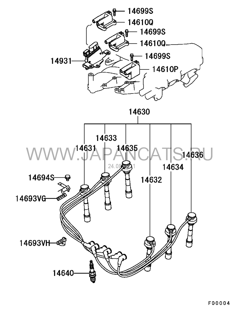 Катушка зажигания- MD 372045 это на левой голове (три катушки с наконечниками)