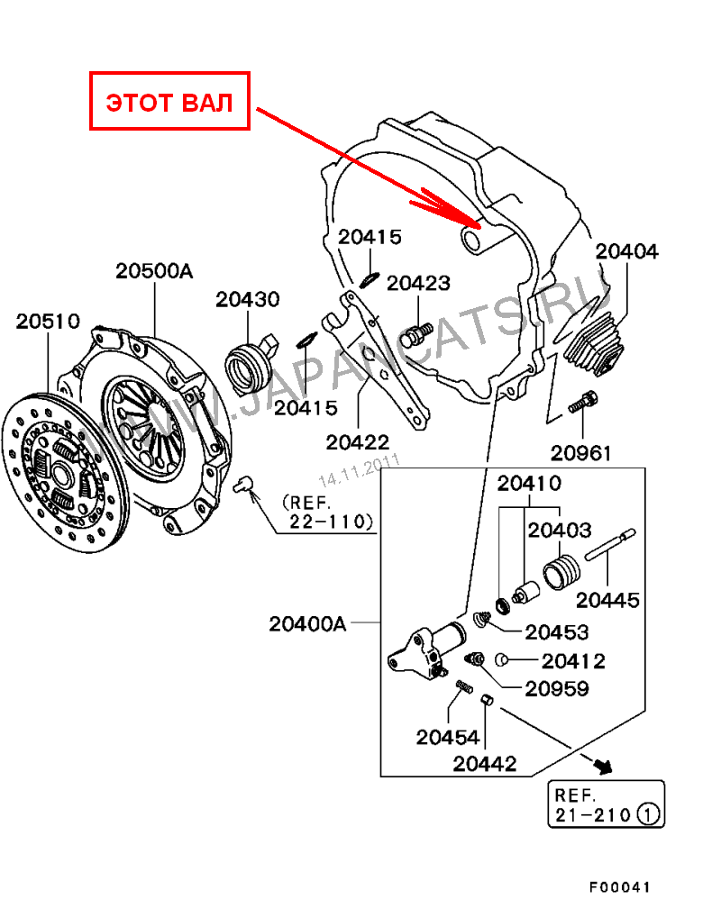 При снятии на валу по которому выжимной передвигается (отмечен красной стрелкой) есть выработка, не критична но есть, визуально видна ! Вал очистил от старой смазки, нанес новую, шла со сцепой. Ход выжимного по валу отличьный, люфт минимален.