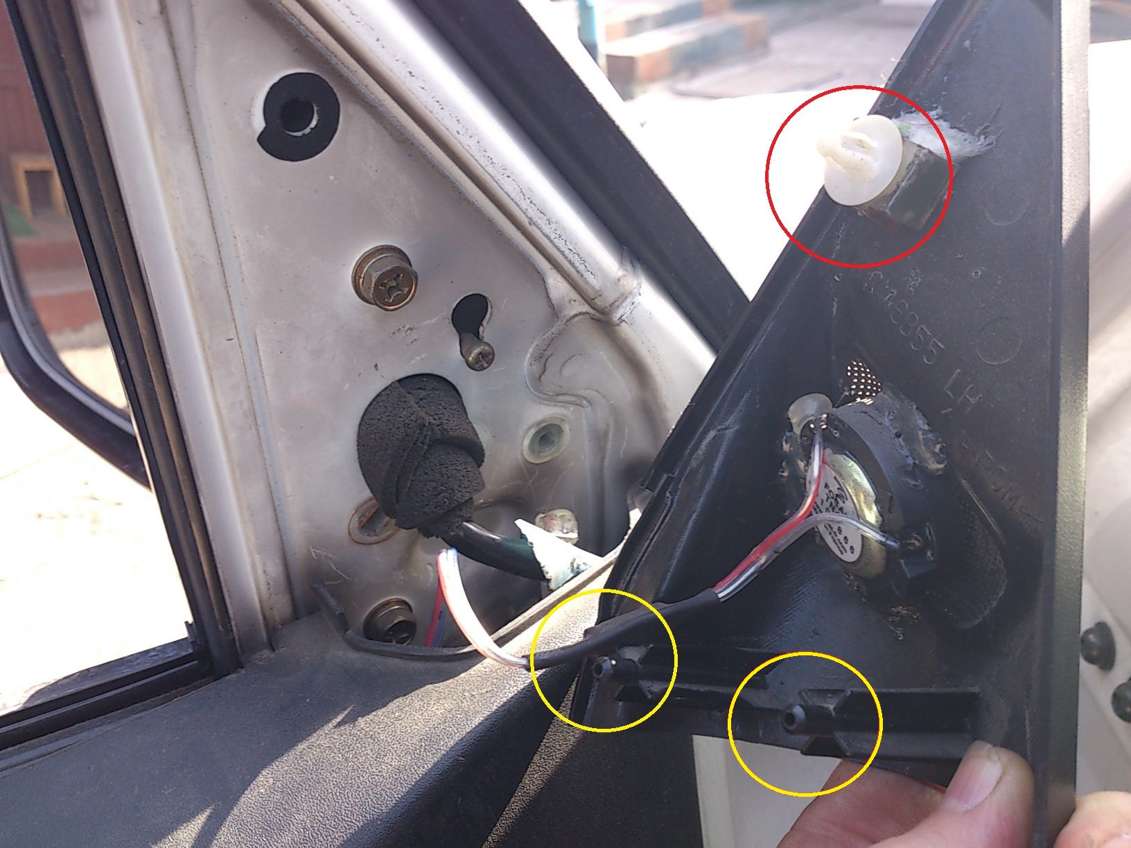 Коллеги, а можно этот маленький динамик с треугольной накладкой вытащить, не снимая основной обшивки двери?HiTEX писал(а):Пищалка - не дынькалка. Это маленький динамик для магнитофона, стоит в чёрной накладке с сеточкой на стойке двери. Так у меня не было этого динамика и разъём болтался и бился об корпусdaos писал(а):А де этот падлючий разъем искать? У меня не дынькает на открытых дверях (видать прошлый хозяин отключал), может и вправду он вывалился где-то.HiTEX писал(а):У меня стучал разъём на пищалку в двери. Тоже всю панель разкурочил (по лёгкому)