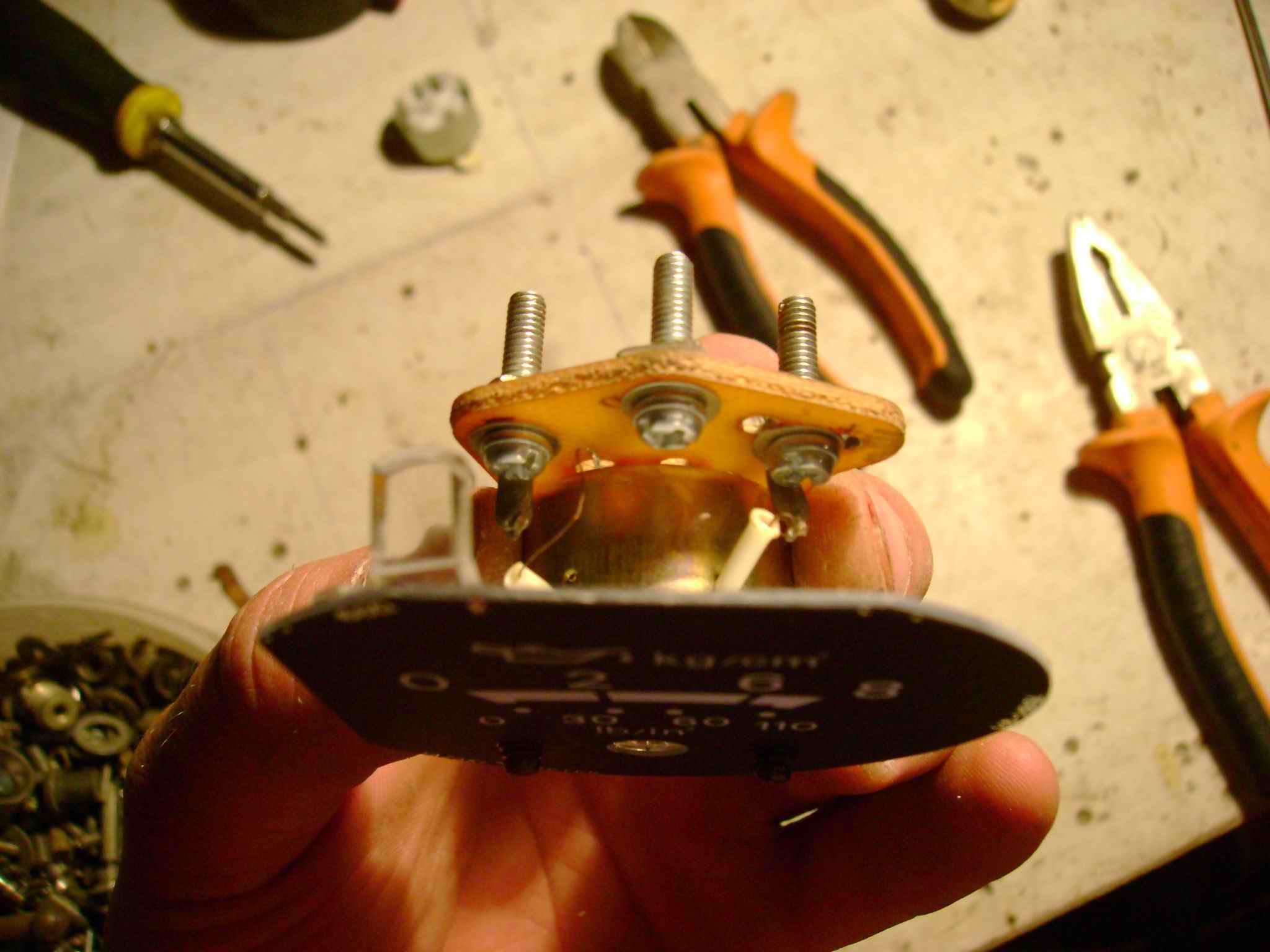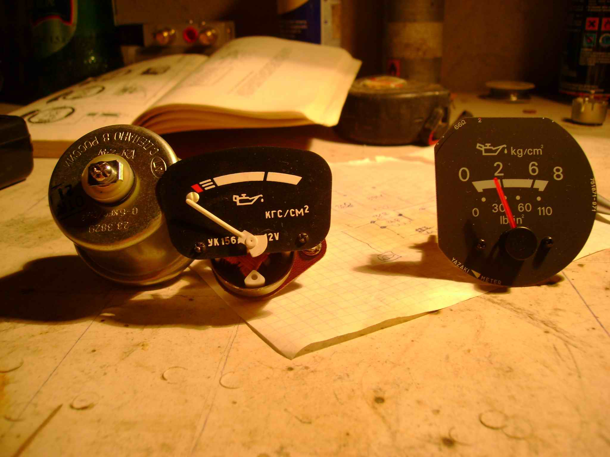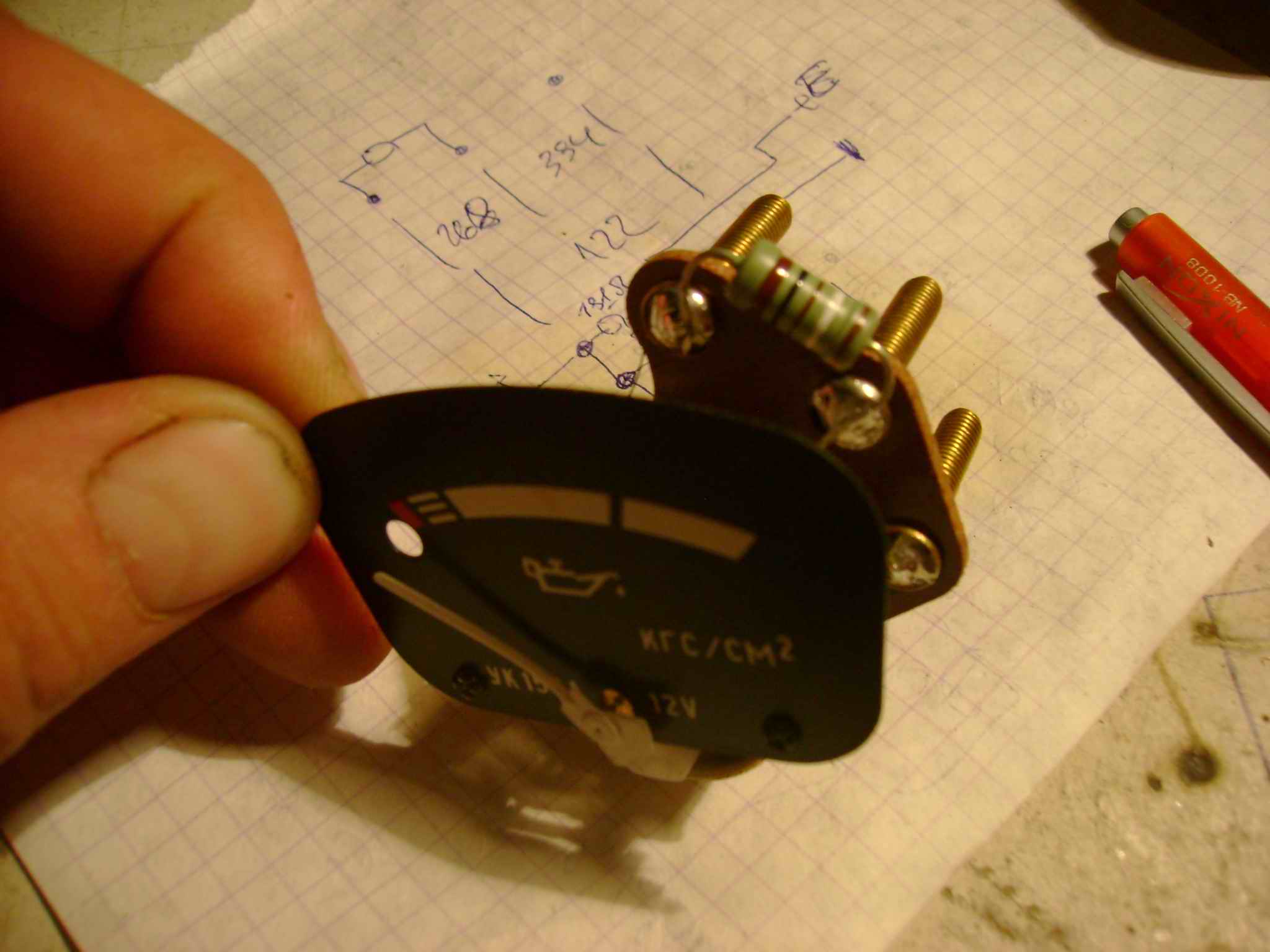 Он у меня сломался, точнее сам датчик давления что стоит на двигателе, а терять жалко. Вот отчет в переделке штатного стрелочного индикатора датчика давления масла.