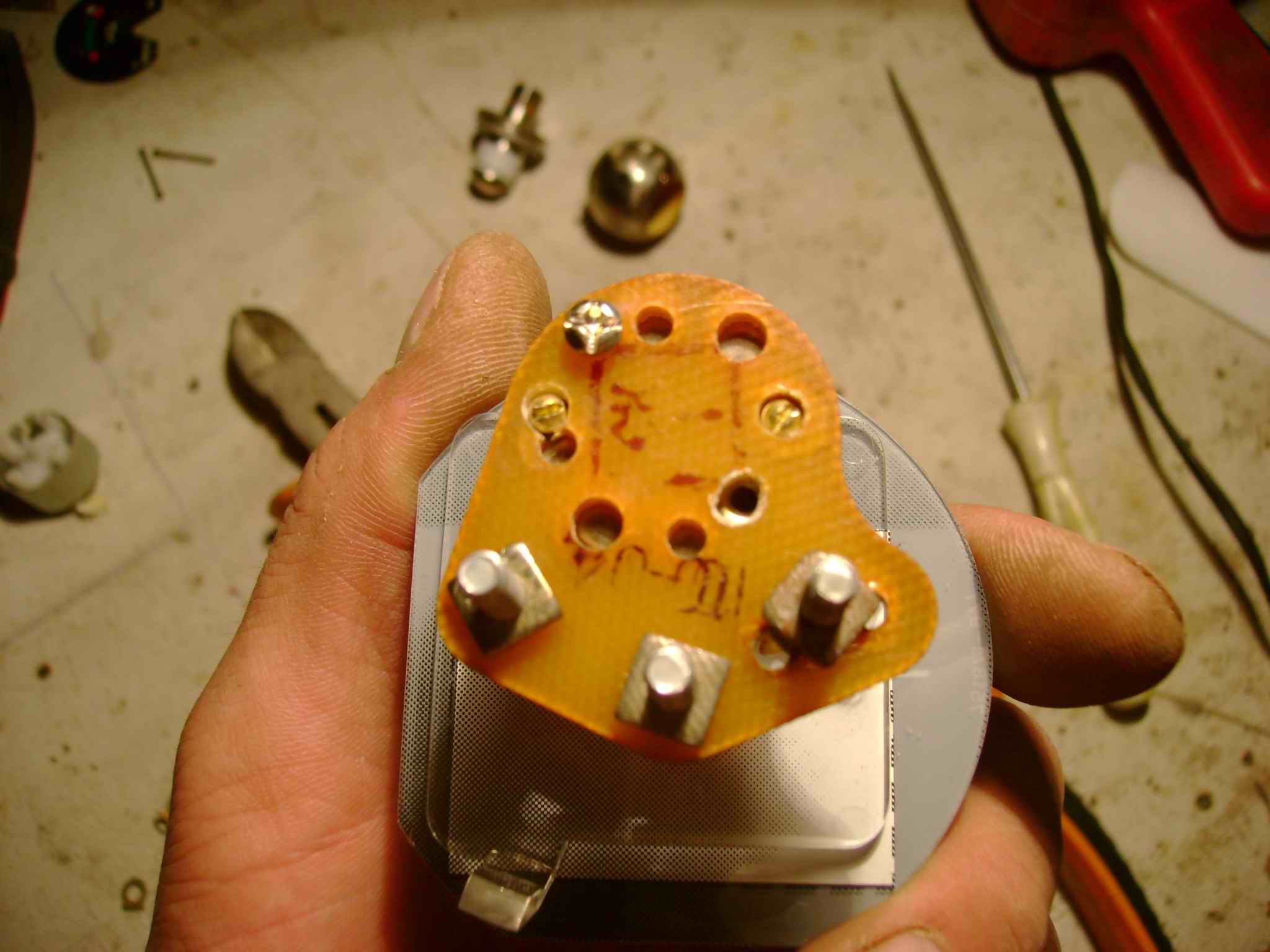 Смотрю на просвет, а это два индикатора аварийного давления масла! Вставил туда радостный лампочки, включаю зажигание, не горят