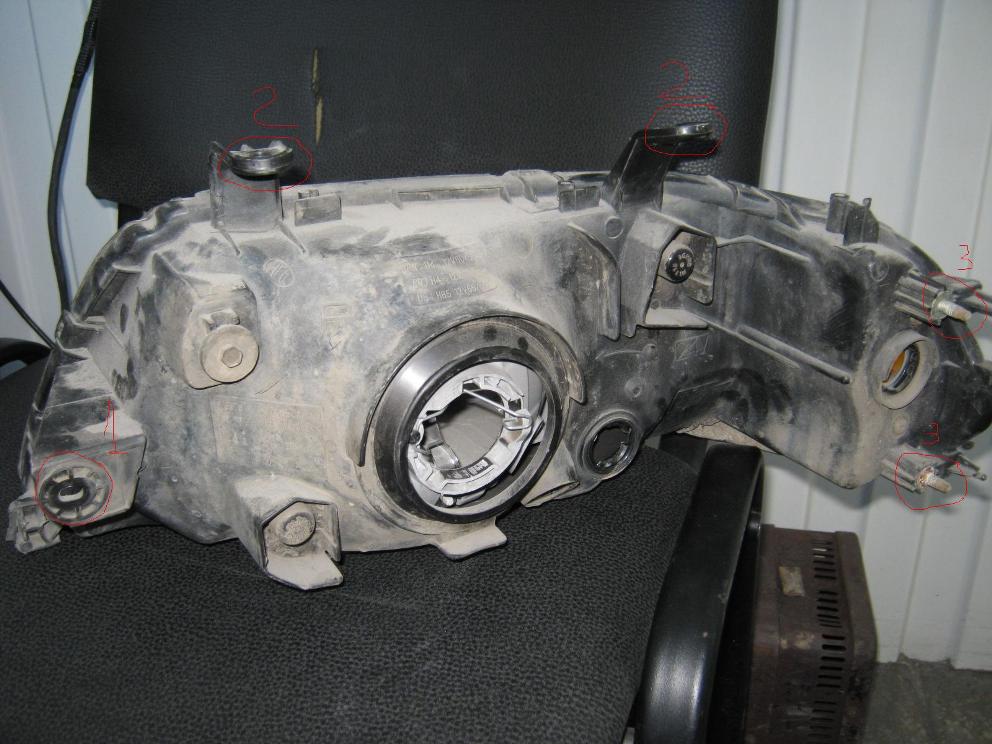 если не вынимается это хорошо значит резьбовое целое , смотри пазики я ж тебе спецом фару разломал и фото сделал.