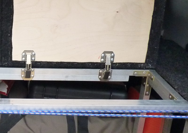 Профиль я брал 40х20 на основной каркас и 20х20 на нижнюю горизонтальную рамку(просто ножки стянуть), но тут такая фигня получилась, что 40x20 поперечины ставишь в горизонтальной плоскости, чтобы побольше для крышек была площадь опоры и получается, что снизу надо еще подложить что-то, чтобы петлю поставить. Так что снизу, там где петли, еще кусок 20х20 стоит. Как умнее сделать - не придумал. На фото видно