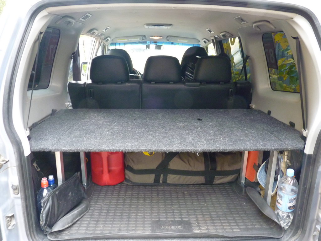 Все равно пришлось бы по центру опорную планку делать, только вдоль багажника, а мне показалось, что удобней если она будет поперек, так как длинномерны предметы если класть вдоль, то доступ к нише 3-его ряда перекрывают.