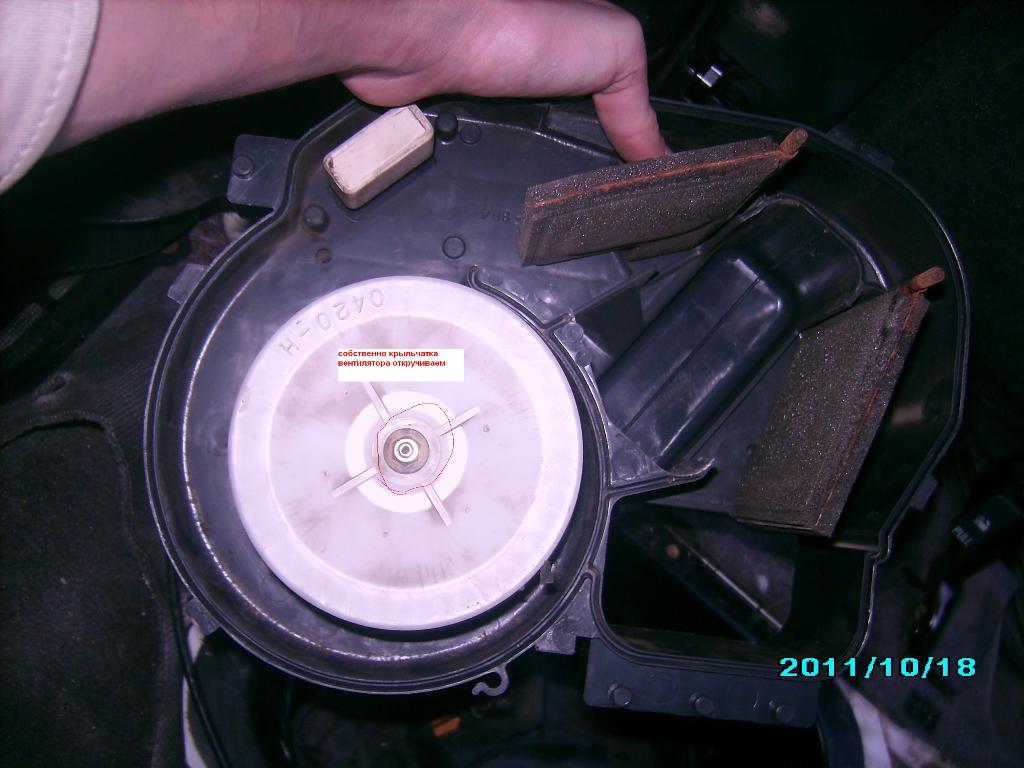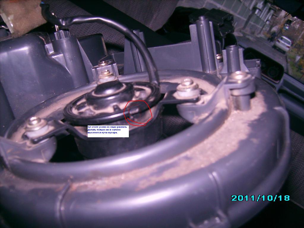 также моторчик имеет снизу несколько зажимов (усиков) аккуратно разжимаешь и снимаешь дно моторчика(делай это не в салоне выспится куча грязи и хлама.) протираем тряпочкой всё до идеала. шкуркой аккуратно затираешь медные контакты моторчика (куда подходят щётки) проверяешь включив зажигание и подсоединив моторчик к клеме. притом без подключенного реле к 2ой клеме работать моторчик будет только на максимум включенном тумблере.