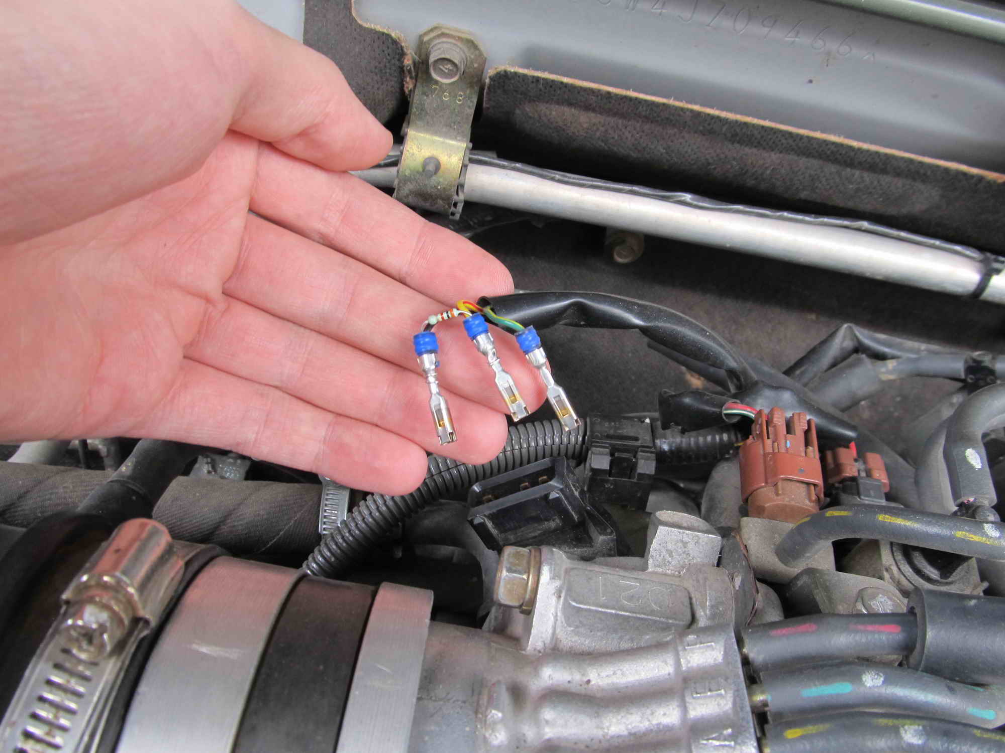 Для этого нужно снять и разобрать колодку датчика TPS, вытащить контакты, выводы резистора просунуть через уплотнительные манжеты и снизу обернуть вокруг тонкой части контактов, потом все собрать в колодку вместе с резистором.