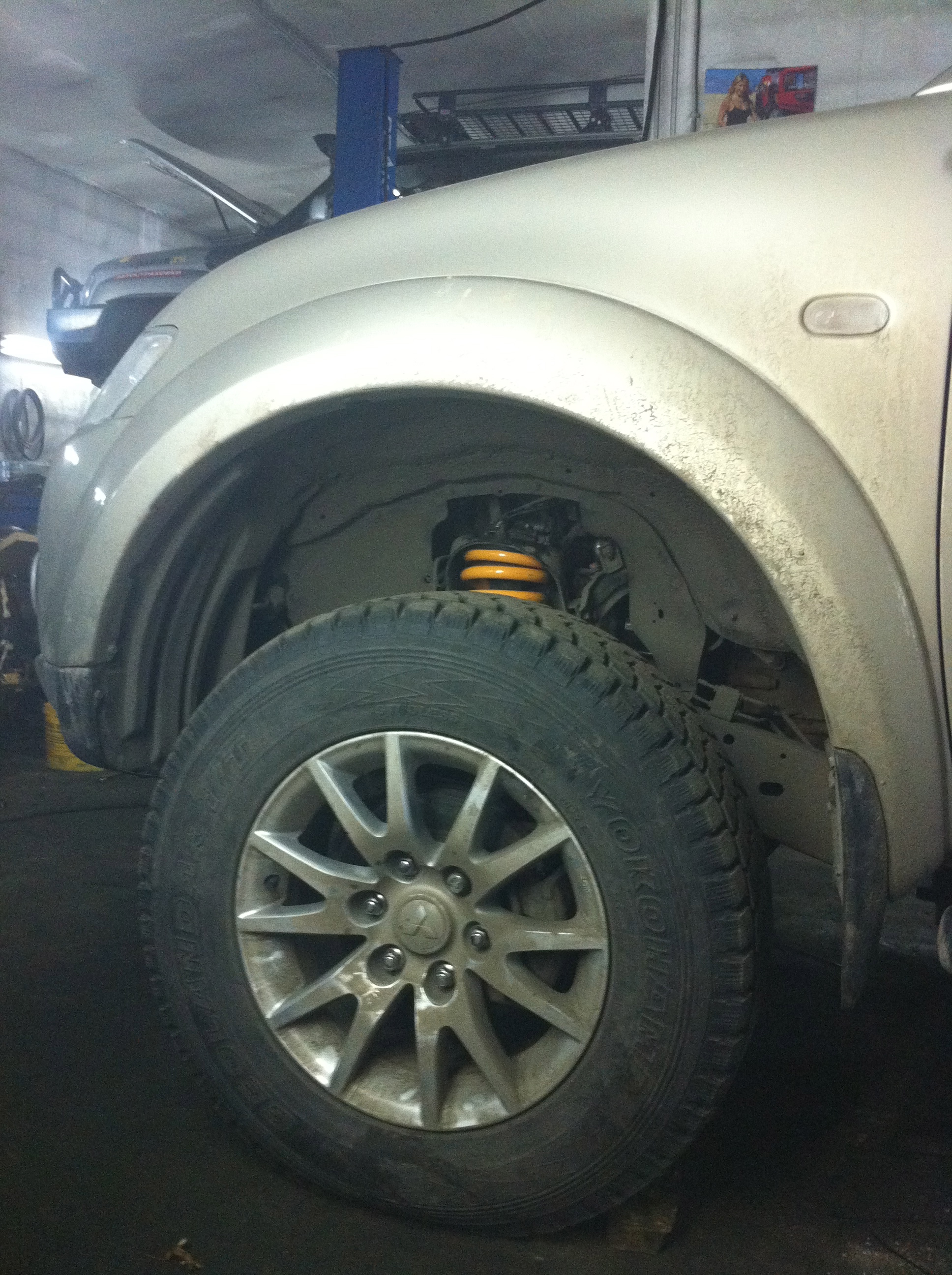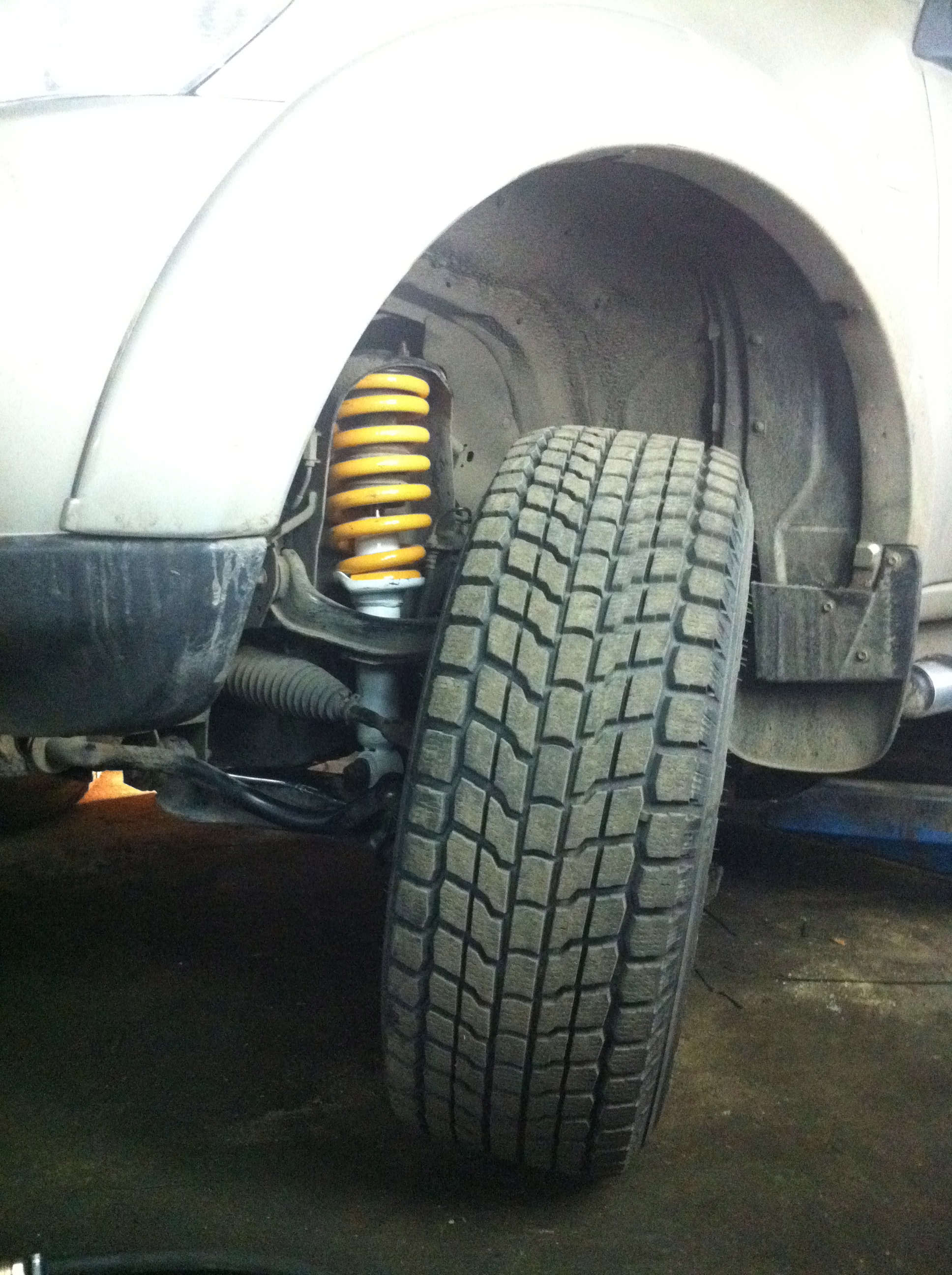 Машина выглядит смешно на 265/65/17, но это временно.