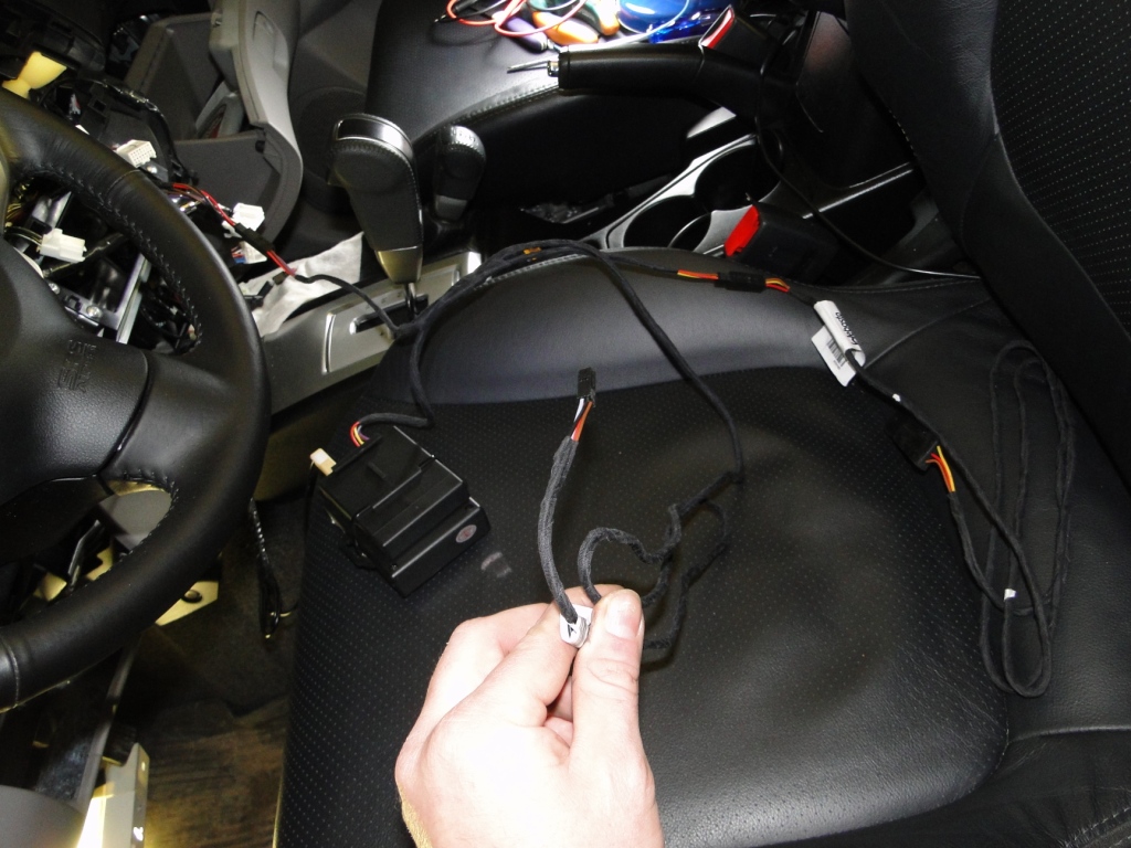 У руля лежит блок Telestart T100. У спинки сидения температурный датчик салона. Держу в руке пустой хвостик к которому можно подключить овальный таймер или фирменный переключатель Webasto (программируется с помощью предохранителя у подогревателя). У селектора АКПП тоже такой же клемник, и все это уходит под капот к предохранителям и блоку подогревателя. Видно тут: