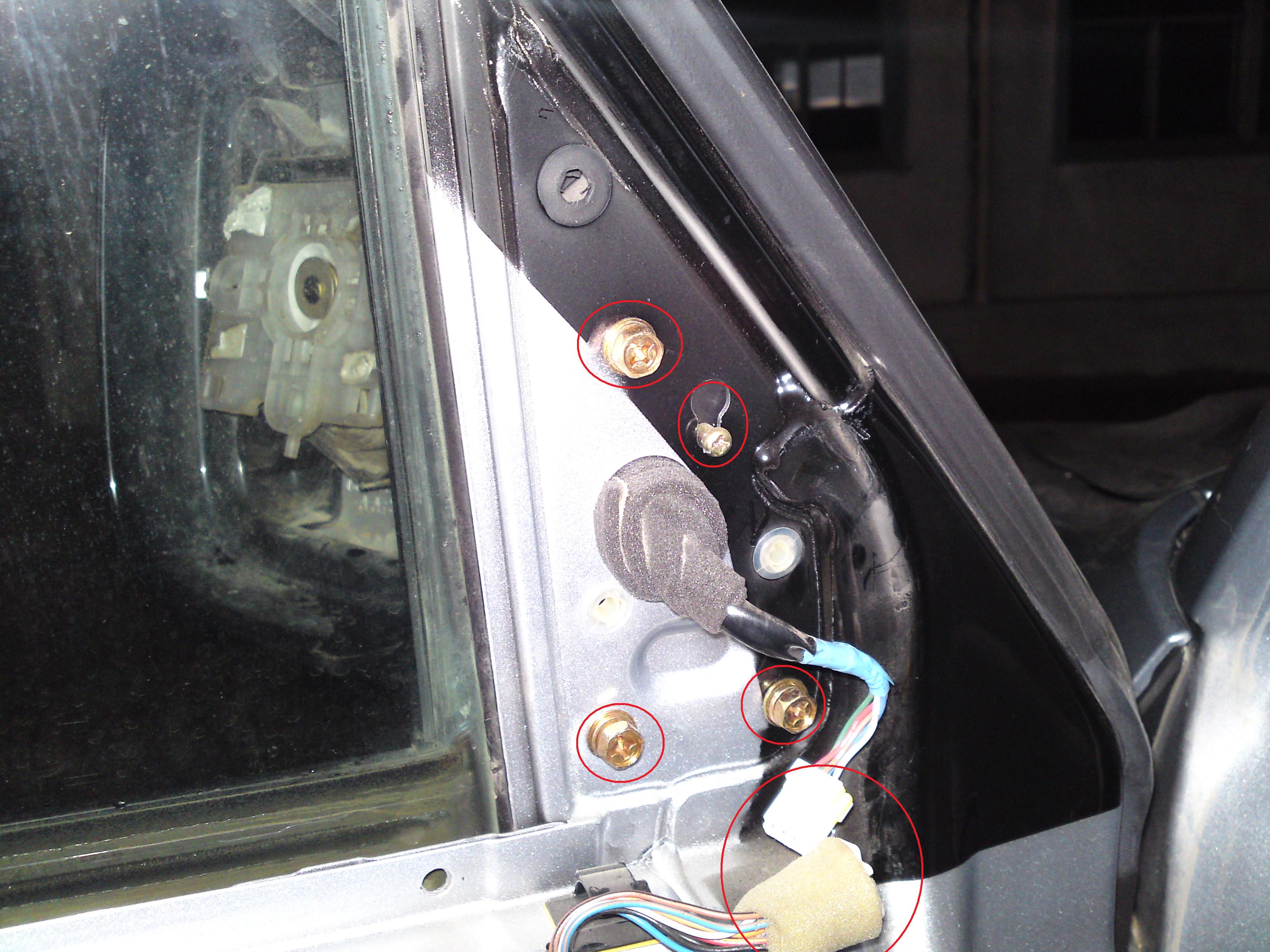 Дальше чтобы провести провода вместе со штатной проводкой и подключить их необходимо снять корпус зеркала и обшивку двери: