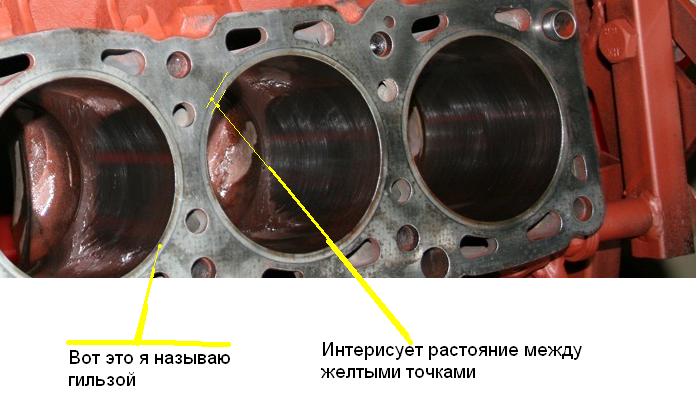 То что Вы называете гильзой, есть блок цилиндров. То что Вы отметили желтыми точками след от уплотнения газового стыка прокладки головки блока. Запаса по расточке блока практически нет. И Ваша идея утопие.