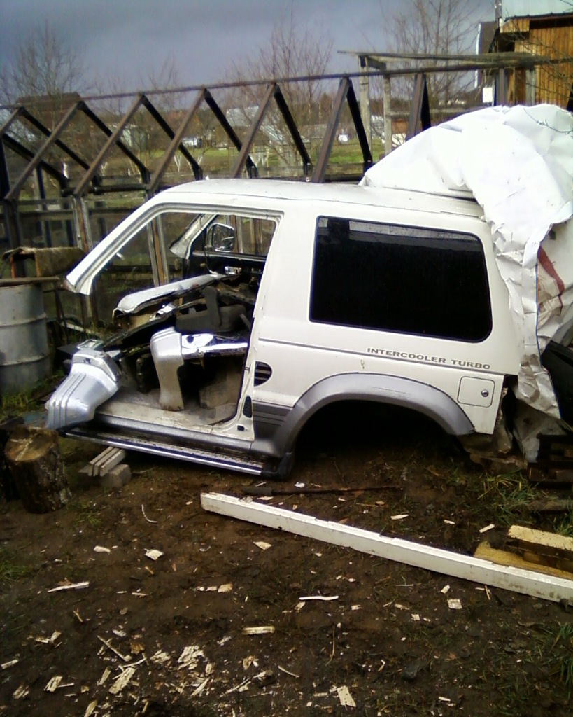 Предистория паджерика: Бывший его владелец (знакомый) по синей лавочке неплохо так его ковырнул через крышу... Сказал что восстанавливать не хочет ну и предложил мне его довольно дёшево! Отказаться не смог, т.к очень давно нравится П2... Изначально хотел своими силами выпрямить крышу и пустить его в спорт, но случайно нашёл в нете неплохой кузов за неочень дорого... Съездил, снял/отпилил с него всё что было нужно, привёз... дальше порезал и снял свой кривой и гнилой (как оказалось) кузов, в раме естественно тоже оказались дырки, заварил, обработал внутри, снаружи, загрунтовал, закрасил, заантикорил.....