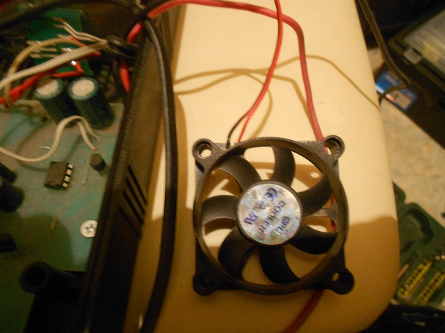 Было принято решение внедрить радиатор от компа и маленький кулер от него же.