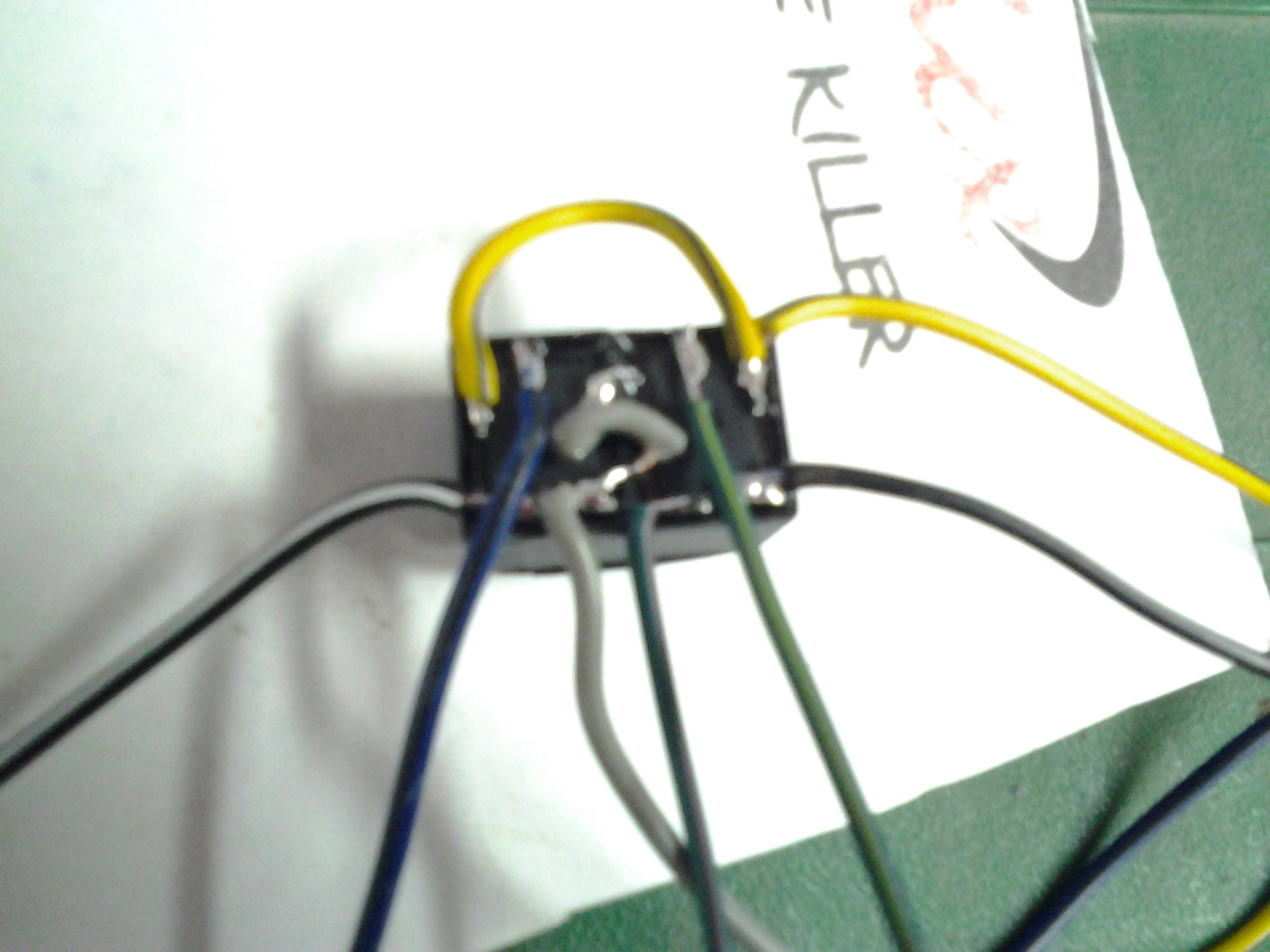 зелено-желтый-- в разрыв на открытие к фиолетово-белому проводу в проводке а\м идущему к зеркалу