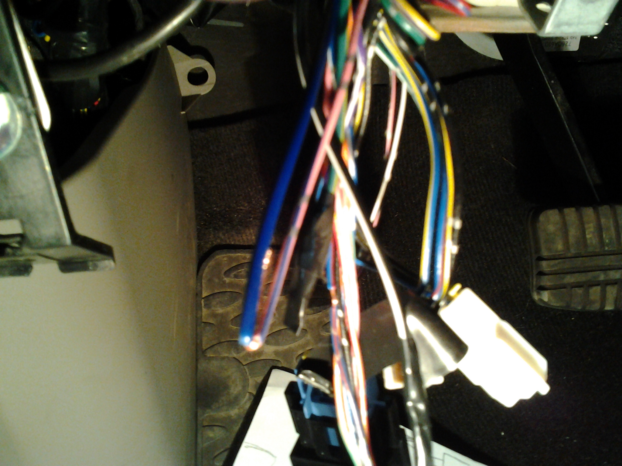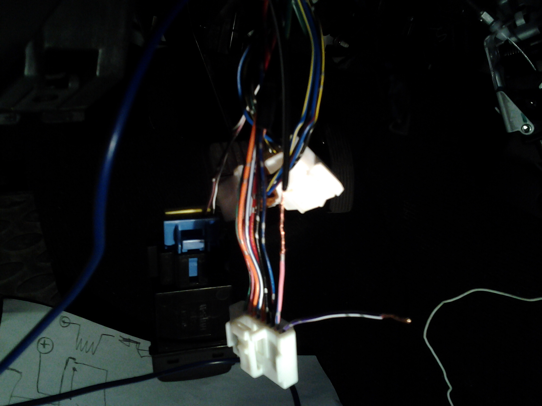 сине черный--в разрыв на закрытие к розово-синему проводу в проводке а\м идущему к зеркалу