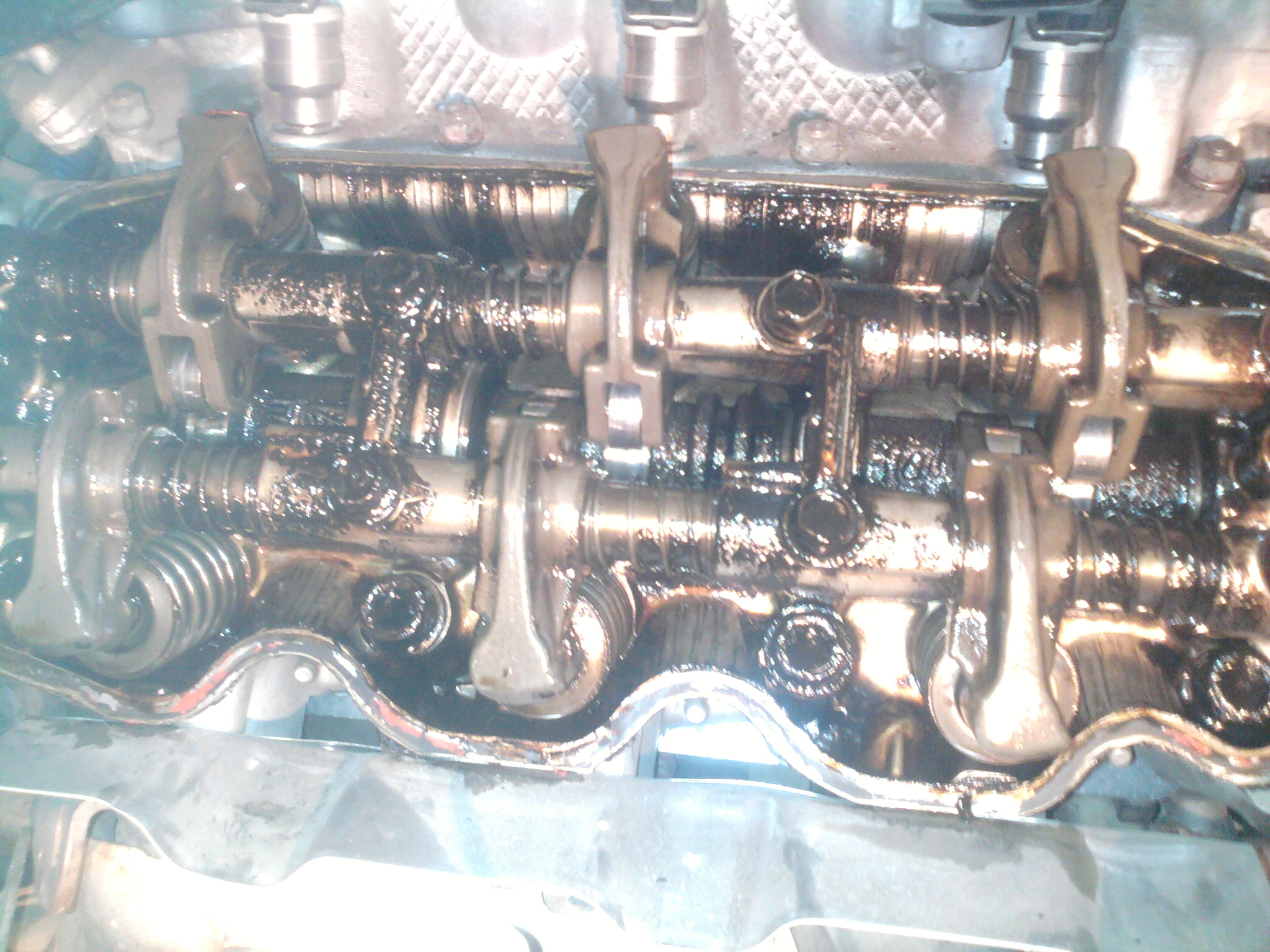Суть вопроса такова: 1. почему правая голова покрыта жженым маслом, а левая чистенькая. 2. Как антифриз попал на крышки, причем строго по впускным клапанам, как это лечить?