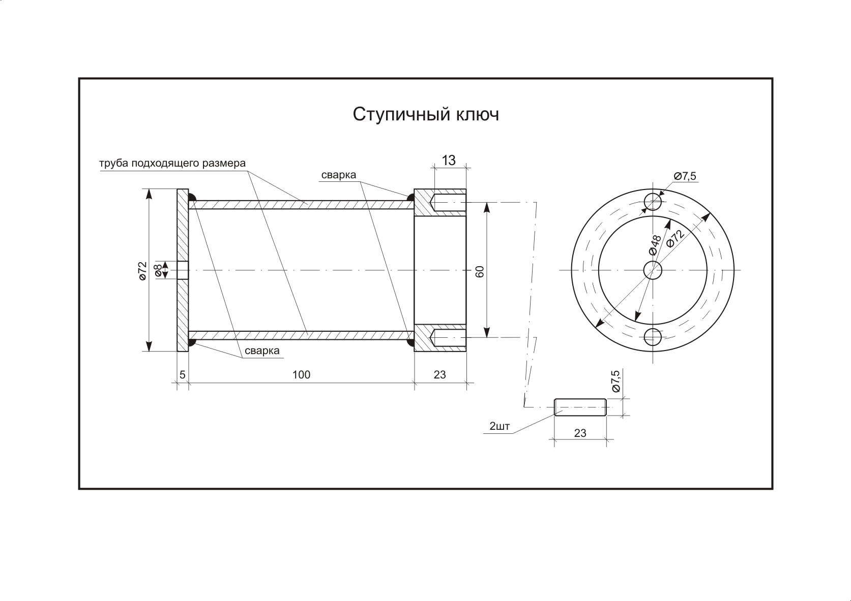 К торцу приваривается гайка или любая головка, например с квадратом 1/2 дюйма.