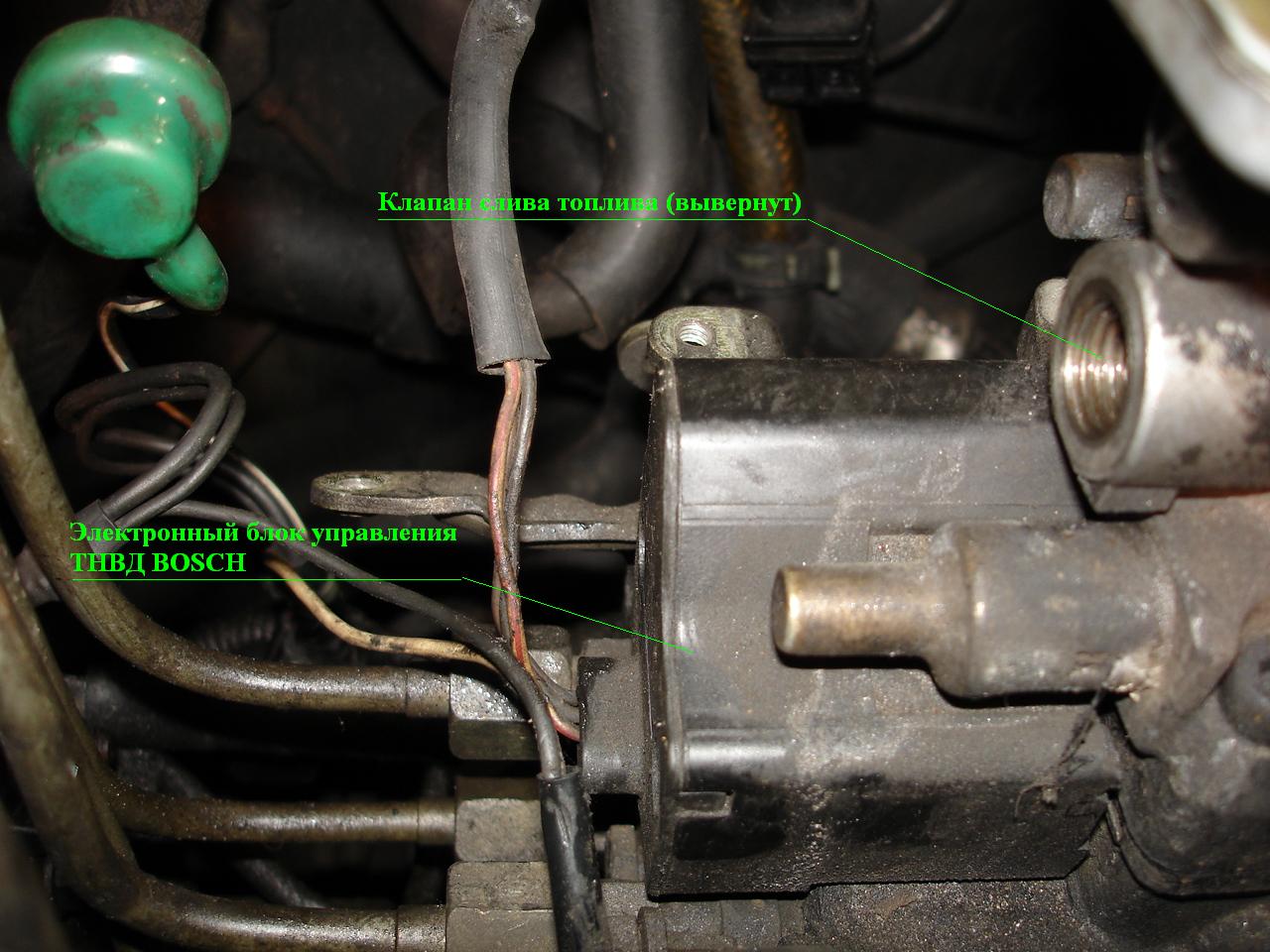Всем доброго дня! Дизель после выключения зажигания не глохнет да и резвости поубавилось заметно! Решил проверить клапан отсечки на ТНВД может засорилось что? Вместо него стоит электронный блок BOSCH. Принципиальной схемы управления данным ТНВД отыскать не удалось пока. Куда копать? Снимать ТНВД с электронным блоком с последующим извлечением данного блока из ТНВД? Может в компе проблемма? На коленке всё равно его не провериш? Кто сталкивался с такой проблеммой? Може ссылку кто даст на принципиальную схемку? Любой информации буду рад! Заранее спасибо!
