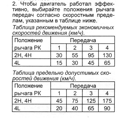 Что-то табличка какая-то сомнительная, на 4-й передаче- 130км/ч - не верится. Обычно разработчики, на сколько я знаю, стараются оптимальный режим работы двигателя привязать к крейсерской скорости 90 км/ч на максимальной передаче. А тут ещё тем более внедорожник... Ну, не знаю...