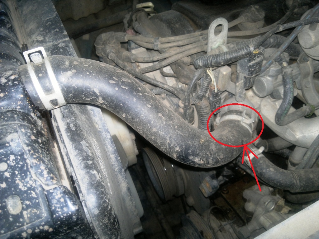 Ну вот собственно что случилось. Лопнул шланг от радиатора к термостату. Место указано стрелкой на фото. Сразу хочу спросить, кто знает от чего подойдет? Просто машина нужна уже завтра после обеда. Родной шланг не успею купить...