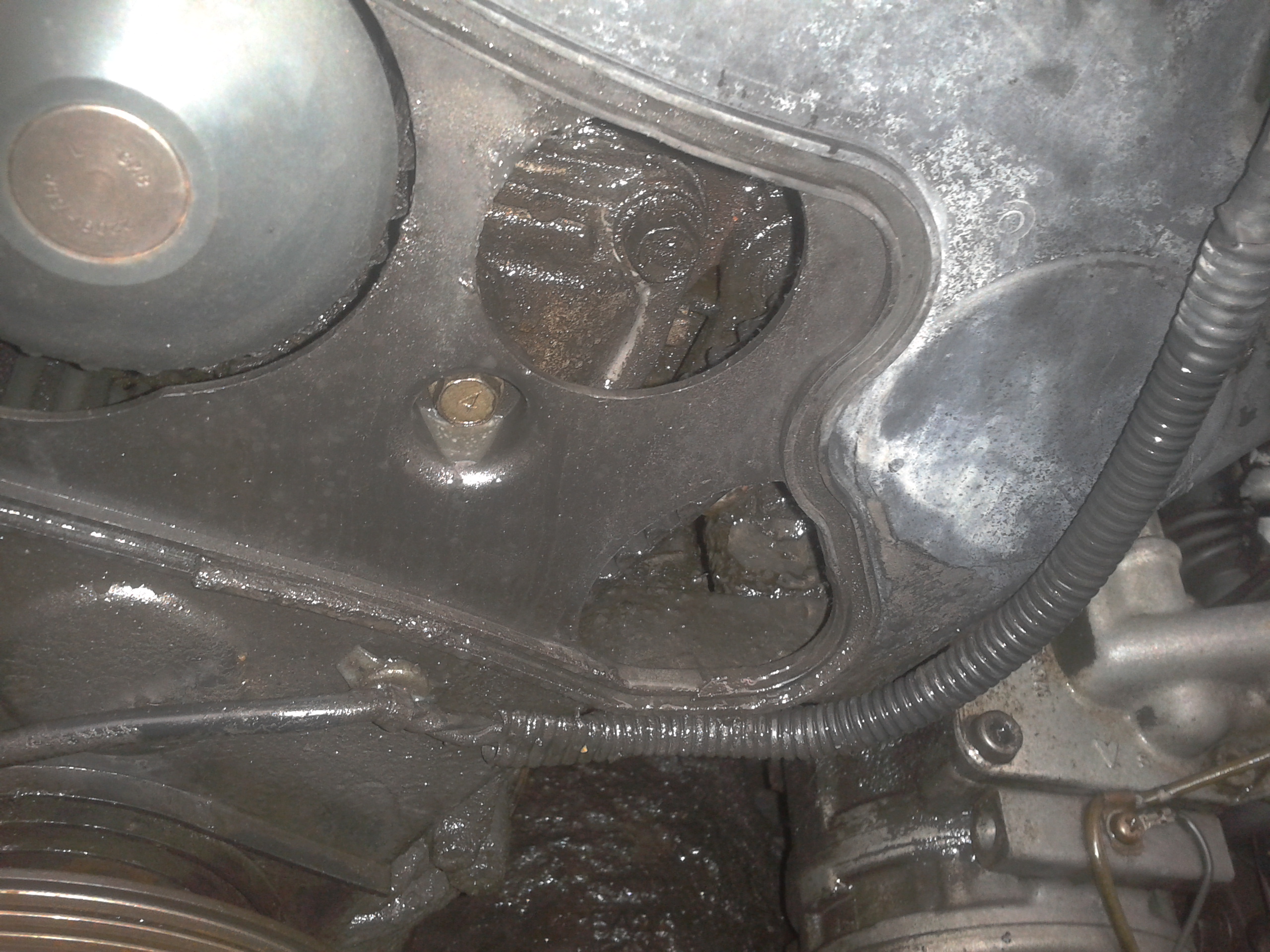 Так как уже единожды я такой диагноз ставил и он подтвердился на 100% то в этот раз особо сомневаться не пришлось. Думал как раз дотяну до отпуска и заменю. А тут на недельку раньше ушел в отпуск и решил мотнуть в Крым а после сменить уже все что намечал. По пути в Крым (1000 км в одну сторону) уже после 200 км пути у меня на щитке приборов загорелась лампа уровня масла... почухав репу решил что сжег много на выходных ибо постоянно авто работало на холостых часами стоя в пробках с кондюком. Доливаю литруху масла и погнал.... и через 200 км история повторяется, что собственно вызвало дикое удивление и по пути в багажник за фонариком обнаруживаю что вся задняя дверь в масле!!! Беглый осмотр.... все двигло в масле, особенно масляный фильтр и шланги, ну и весь лонжерон. По началу думал что шланг, нашел эстакаду, заскочил, стоит работает на холостом - ниче не течет, поднимаем обороты до 3000 - сцука, погнало из под сальников толи распредвала толи колена. Скидываю крышку с ремня - сухой вроде. Настрой был ехать в Крым, запасся маслом и погнал. За 2500 км вытекло 12!!! литров масла, да и хрен с ним, главно что свозил и отдохнули.
