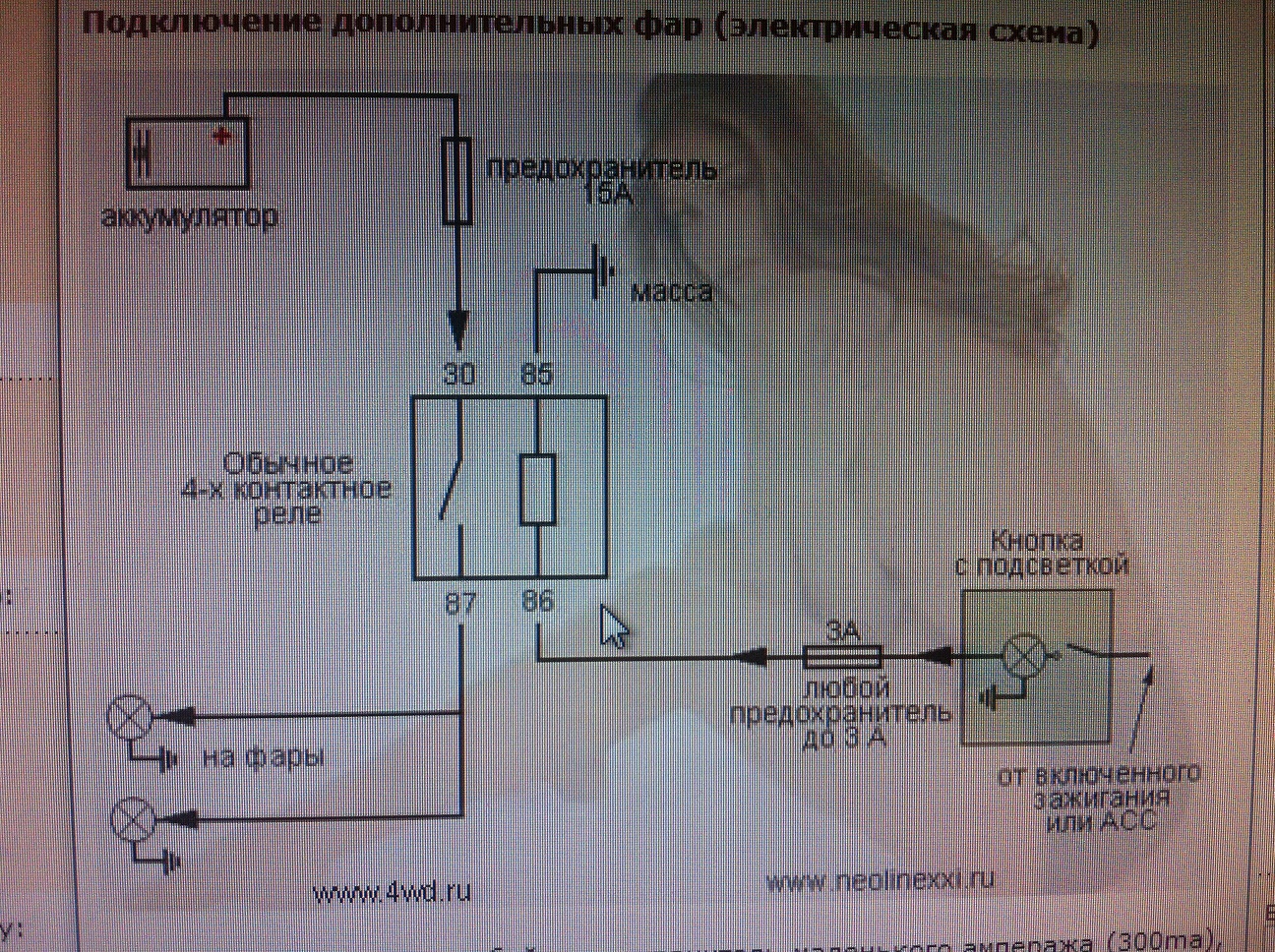 Купил ещё обычное 4ех контактное реле от ВАЗ.. нашел и интернете схему подключения.