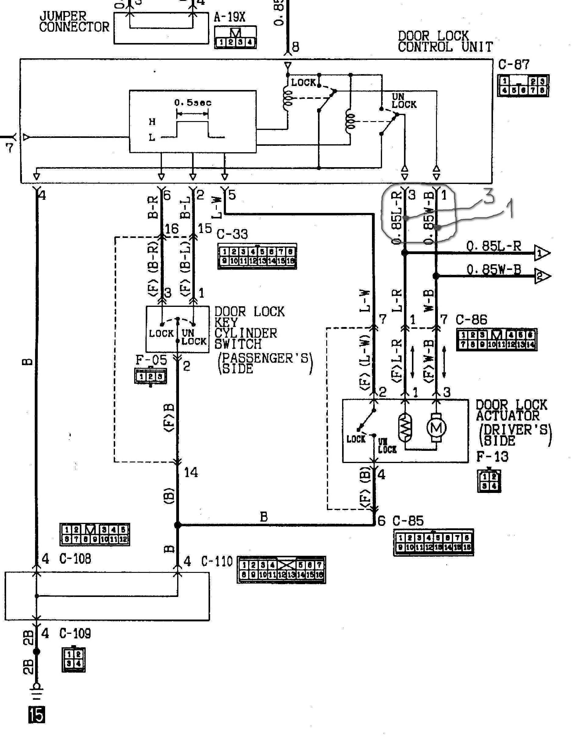 Возник вопрос: Подключил провода от сигналки "открыть-закрыть"(такое было подключение прежней сигналки-"американская схема"-инверсия "+" и "-") к контактам "1"L-R и "3"W-B ЦЗ (обведено на схеме). Все работает-открывает и закрывает с брелка, но при отключенном блоке ЦЗ