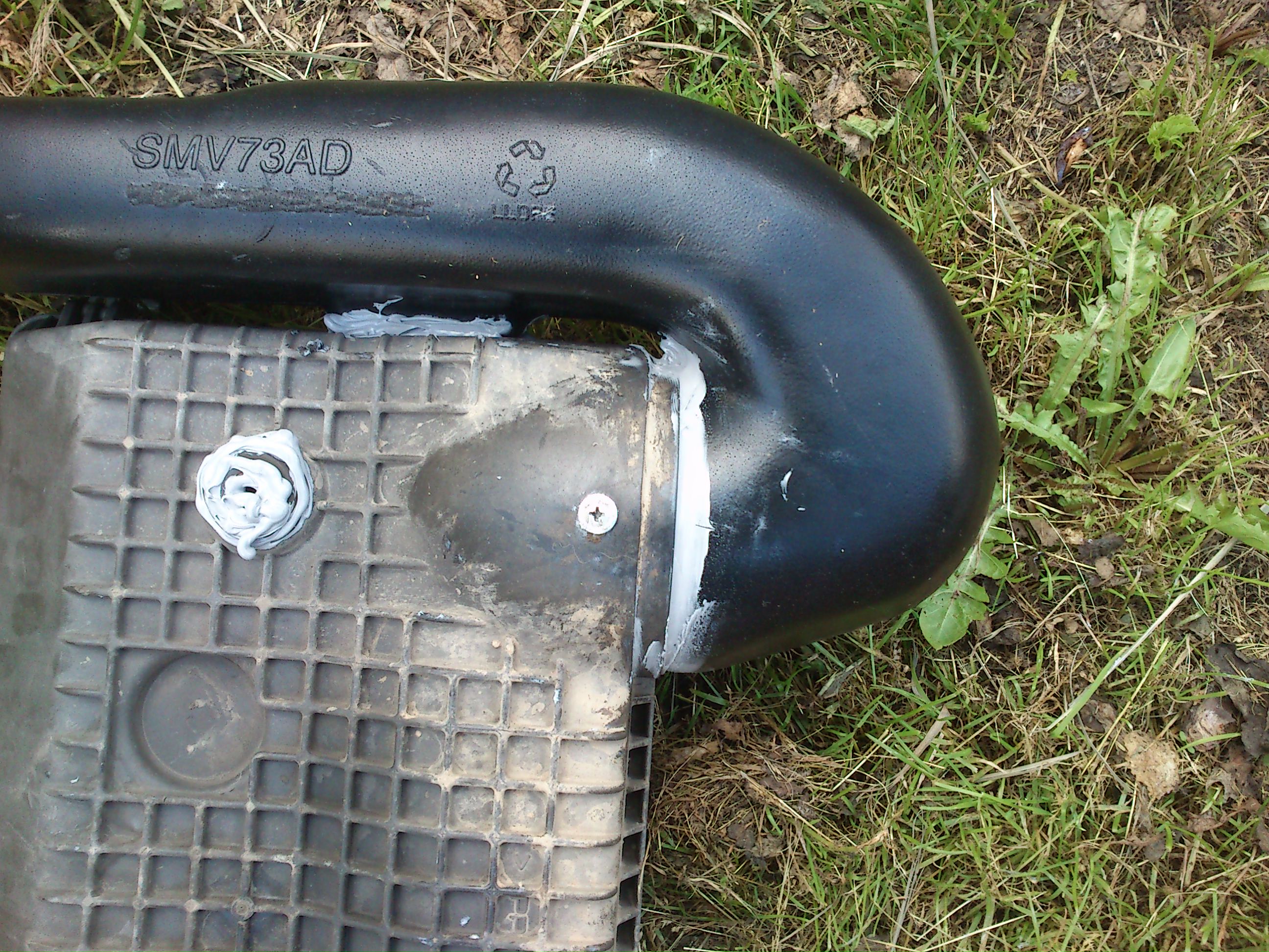 .Тут я почти приладил маленькую пластину из комплекта,но понял,что не то..Засада третья:резиновая соединительная муфта-её нужно обезжирить,часть труб на соединении зашкурить-скользкие,шописец!!! :]:-O: Хомут зажимаешь-соскальзывают.Герметик действует как смазка,так что лучше не надо-лучте тогда резиновый клей...Засада четвёртая:кастрюля фильтра не хочет становиться на место ::-(: Внутреннее отверстие в крыле прям просится вперёд-но куда? :*DONT_KNOW*: Щас до меня дошло,что может пластины нужны для смещения крепежа корпуса фильтра?А тогда я просто натянул кое как и всё встало на свои места..Ещё раз проверил герметик и приступил к сборке.Горловина стала тока на один болт-второй не пошёл..Сливную приблуду в корпус фильтра,пока не подобрал-смотрю чё поминиатюрней-но это уже мелочи :8-): Щель снаружи заделал чёрным герметиком-фото,еси чё-завтра.Остальные фото в следующем сообщении-сюды не влазют :*DONT_KNOW*: Вроде ничего не забыл,может кому поможет! :*BYE*: