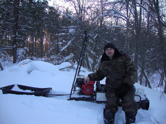 Первый был 6 лошадковый для одного ну максимум один крупный дядя и ребёнок, испытали и отдали отцу старичку. Теперь у нас 16 л.с. О ЭТО ЧУДО. Во мне 130кг в нём 110 в друге тоже к соточке и сынуля лет 10. Так вот мы в четвером со всей амуницией ОТЖИГАЛИ по озеру на ура и лёд и снежные перемёты ,ему ВАЩЕ не по чём. Мотор стоит китаец вариаторный, гусеница от снегохода (точно не знаю какого). Носиться он как ошалелый и тянет мама не горюй.